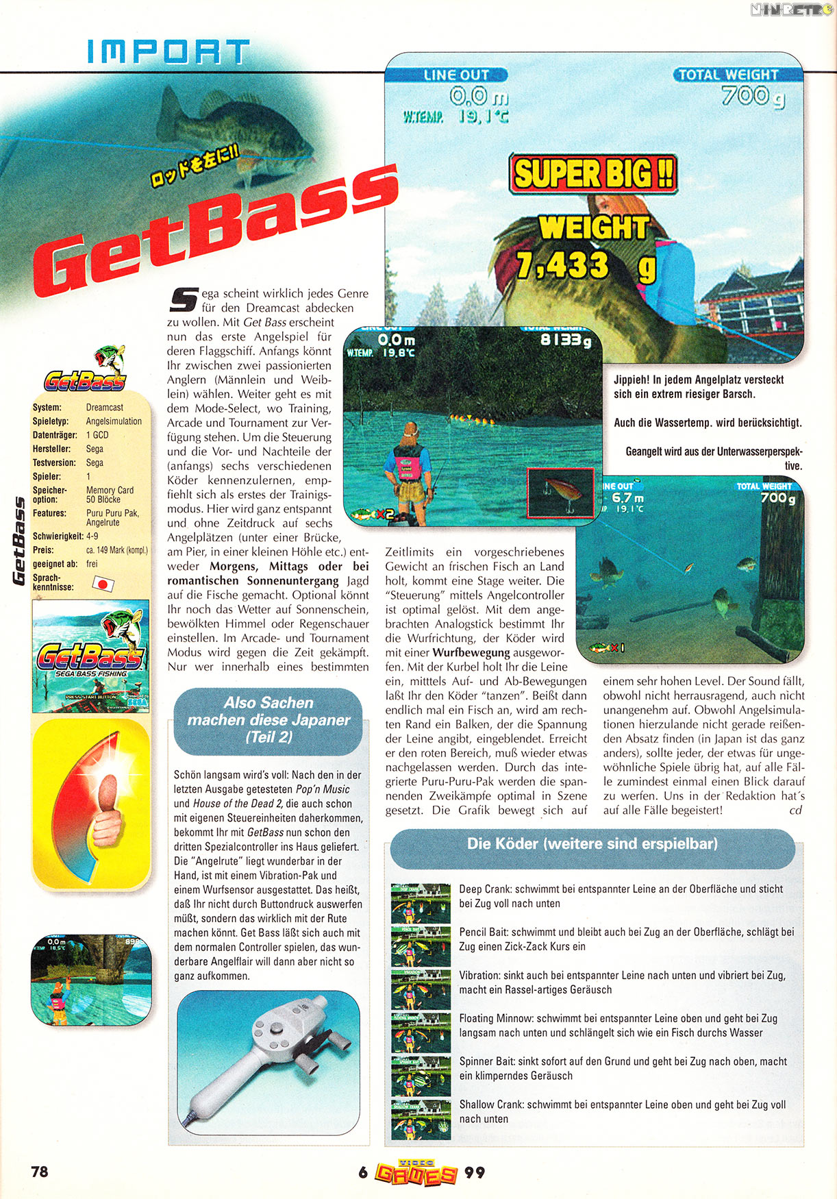 Bass Fishing holte ich mir dann auch direkt zum Erscheinungstag mit der Dreamcast. Im übrigen meine einzige alte Konsole die nicht mehr 100%ig funktioniert. Das gute, alte Colecovision verrichtet noch bis heute artig seinen Dienst!