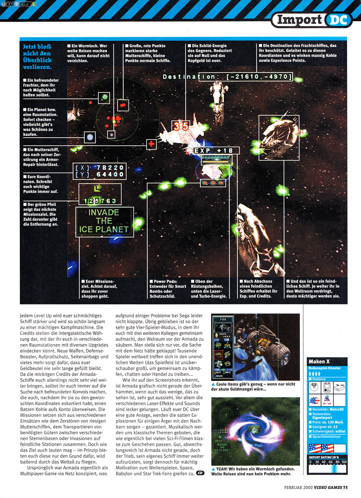 Play simultaneously with up to 4 of your friends to blast the alien hordes in this action-RPG world. Use the VMU to store information about your newly acquired technology and skills. Invite your friends to bring their ships to come fight in your game, or just to trade items that you have found.