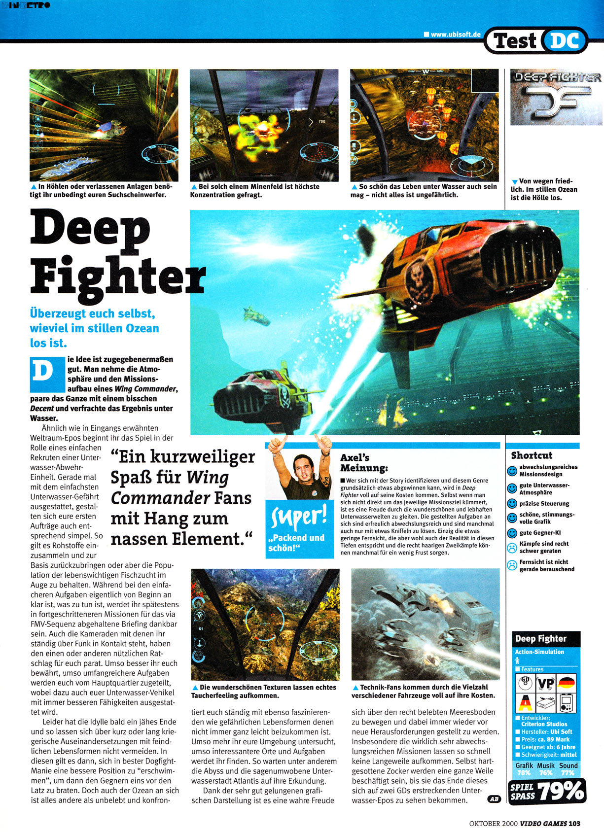 DIE WELT VON DEEP FIGHTER STECKT VOLLER LEBEN! SCHWIMMENDE FISCHE, LUFTBLASEN AUS DEM BODEN DES OZEANS... KLASSE MOVES, VERFOLGUNGSJAGDEN UND ANGRIFFE SEHEN BESONDERS SPEKTAKULÄR AUS.