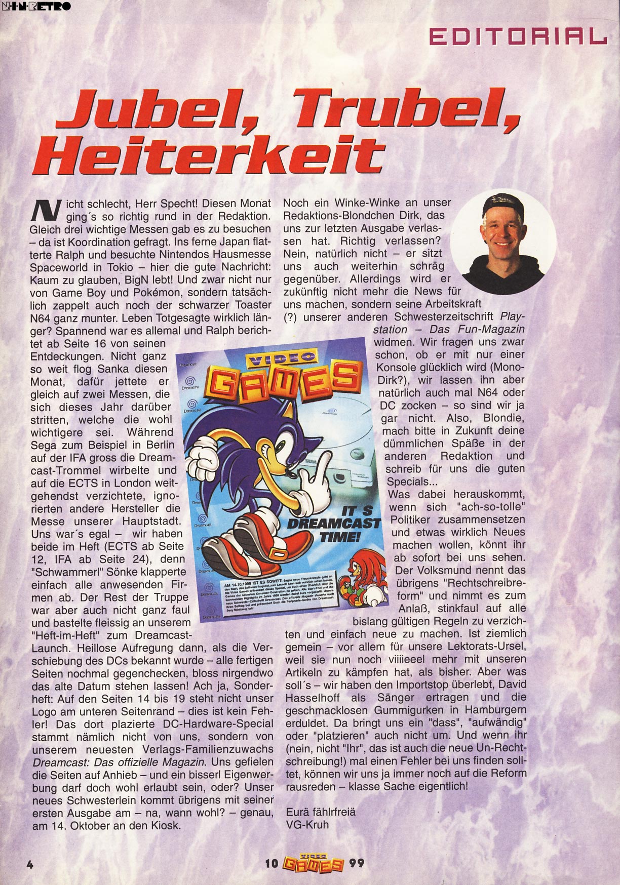 Anlässlich des damaligen Dreamcast-Launchs in Europa, enthielt diese Ausgabe ein 32 Seiten starkes Sonderheft im Heft. Darin zu finden sind die ersten Reviews sowie Specials rund um die Konsole selbst und Sega.