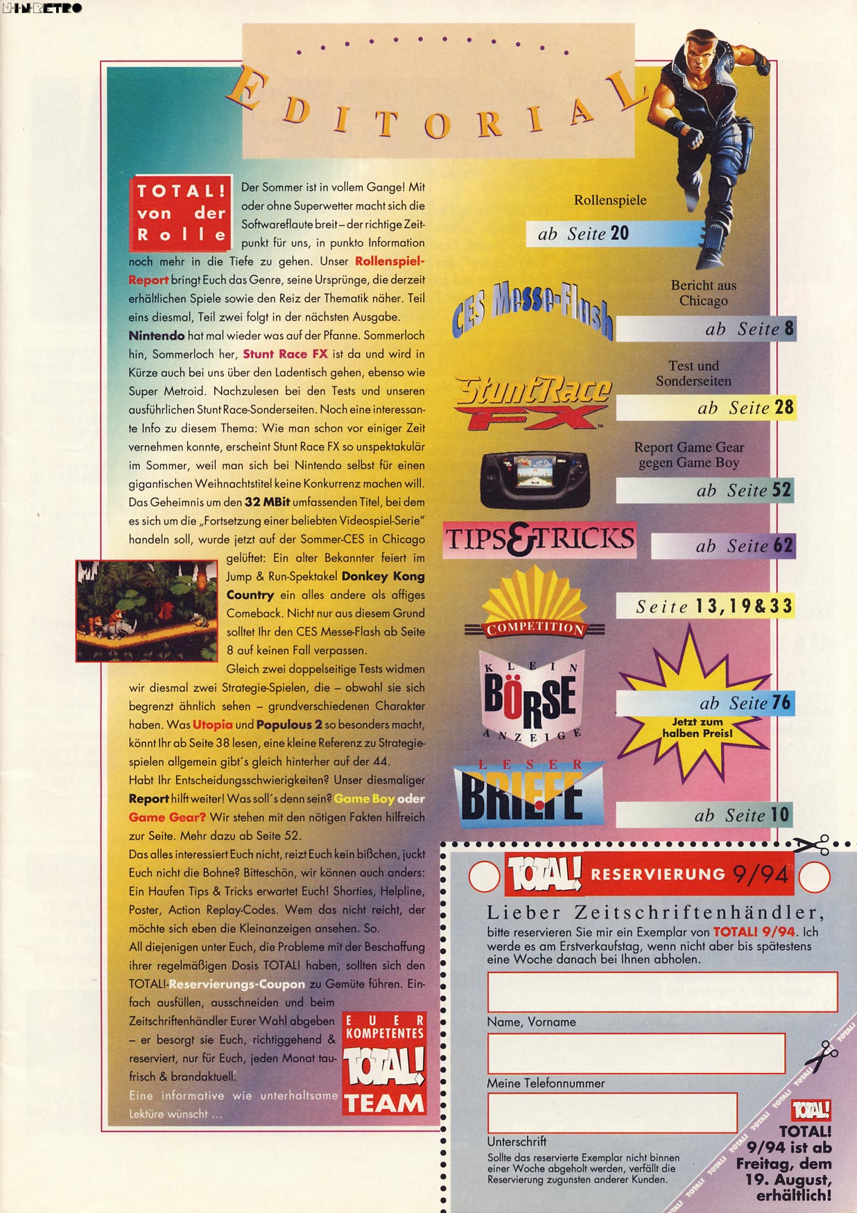 Es werden nur Beiträge zu Konsolenthemen gelistet die für N.i.n.Retro eine Relevanz haben. Reviews sowie Berichte zu Computerspiele, oder Konsolensysteme die nicht auf dieser Internetseite gelistet sind, werden nicht berücksichtigt sofern diese in der jeweiligen Ausgabe vorhanden sind. (Betrifft zum größten Teil nur Zeitschriften die sich neben Videospiele auch mit Computersystemen beschäftigt haben.) |