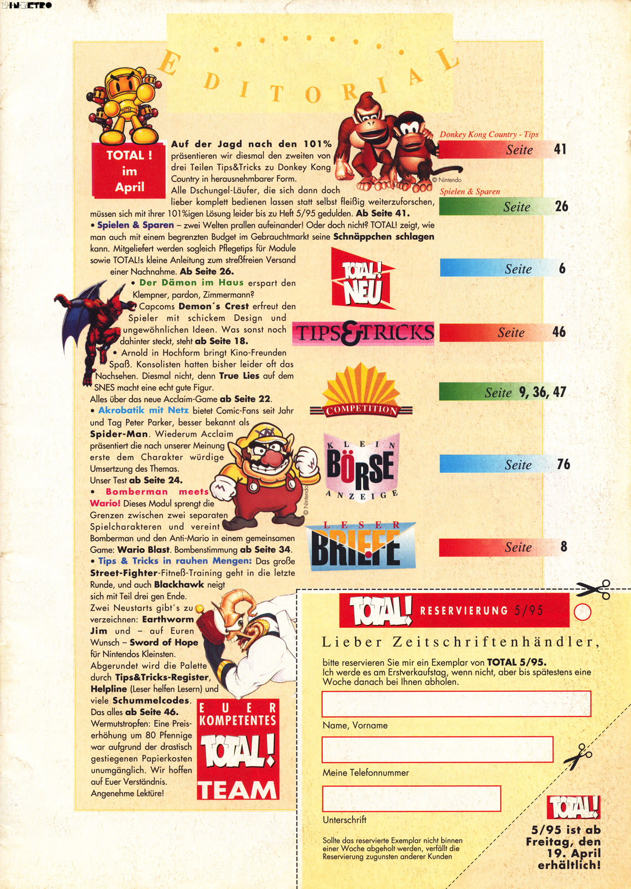 Es werden nur Beiträge zu Konsolenthemen gelistet die für N.i.n.Retro eine Relevanz haben. Reviews sowie Berichte zu Computerspiele, oder Konsolensysteme die nicht auf dieser Internetseite gelistet sind, werden nicht berücksichtigt sofern diese in der jeweiligen Ausgabe vorhanden sind. (Betrifft zum größten Teil nur Zeitschriften die sich neben Videospiele auch mit Computersystemen beschäftigt haben.)
