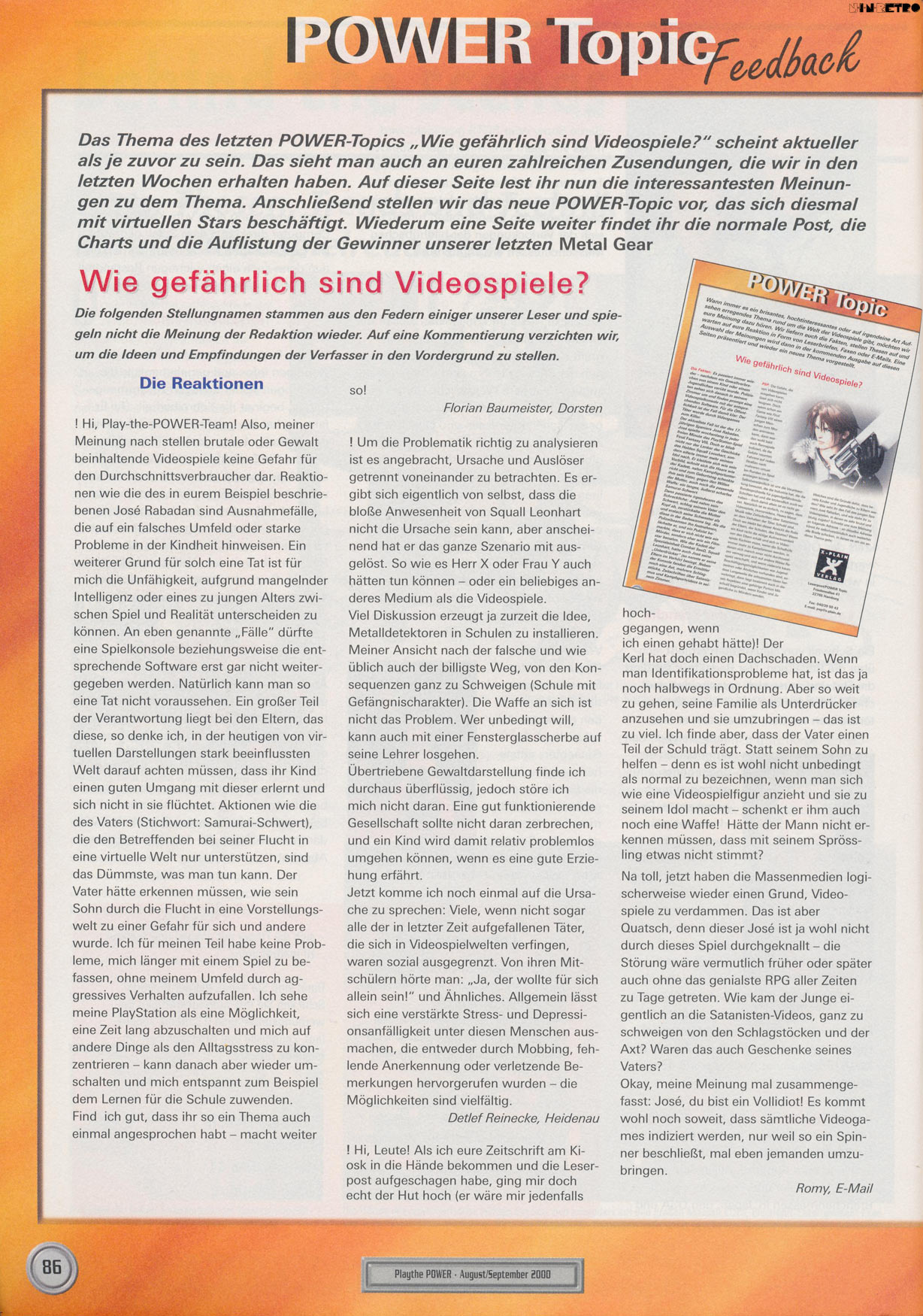 Es werden nur Beiträge zu Konsolenthemen gelistet die für N.i.n.Retro eine Relevanz haben. Reviews sowie Berichte zu Computerspiele, oder Konsolensysteme die nicht auf dieser Internetseite gelistet sind, werden nicht berücksichtigt sofern diese in der jeweiligen Ausgabe vorhanden sind. (Betrifft zum größten Teil nur Zeitschriften die sich neben Videospiele auch mit Computersystemen beschäftigt haben.) |