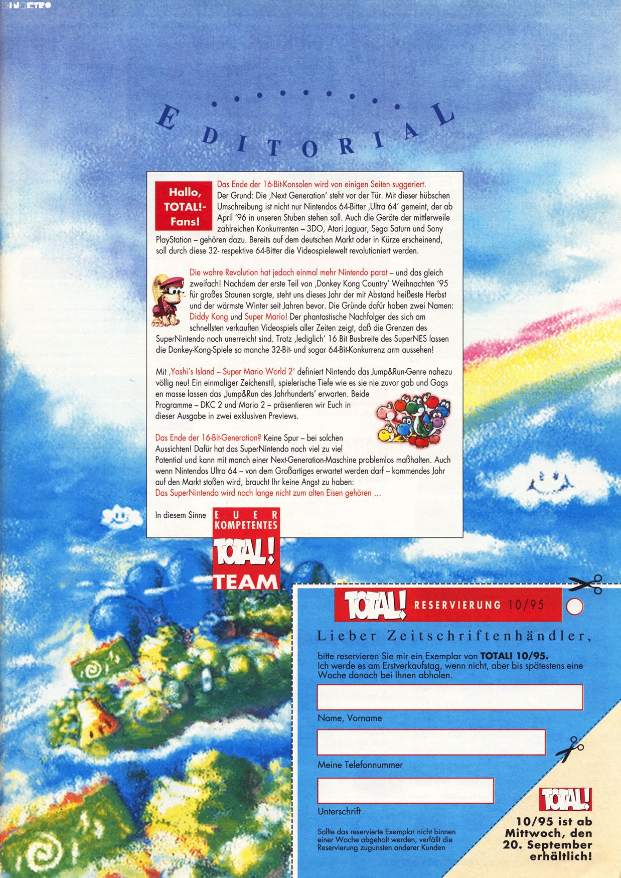 Es werden nur Beiträge zu Konsolenthemen gelistet die für N.i.n.Retro eine Relevanz haben. Reviews sowie Berichte zu Computerspiele, oder Konsolensysteme die nicht auf dieser Internetseite gelistet sind, werden nicht berücksichtigt sofern diese in der jeweiligen Ausgabe vorhanden sind. (Betrifft zum größten Teil nur Zeitschriften die sich neben Videospiele auch mit Computersystemen beschäftigt haben.) |