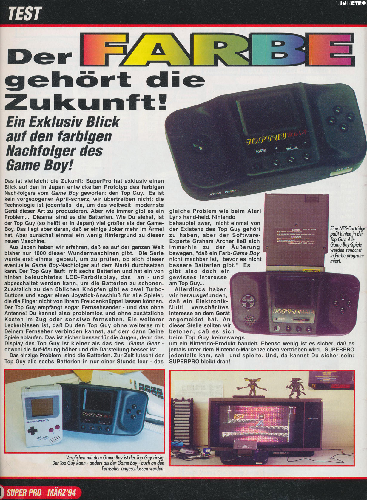 Durch Zufalle, weil ich nach Infos zum TopGuy gegooglet habe, bin ich auf das hier gestoßen. Kann es sein, dass die "Super Pro" nur eine ins Deutsche übersetzte Version der damals in UK erschienenen "Super Gamer" war? Der Artikel und das quasi identische Layout sprechen eigentlich sehr dafür.