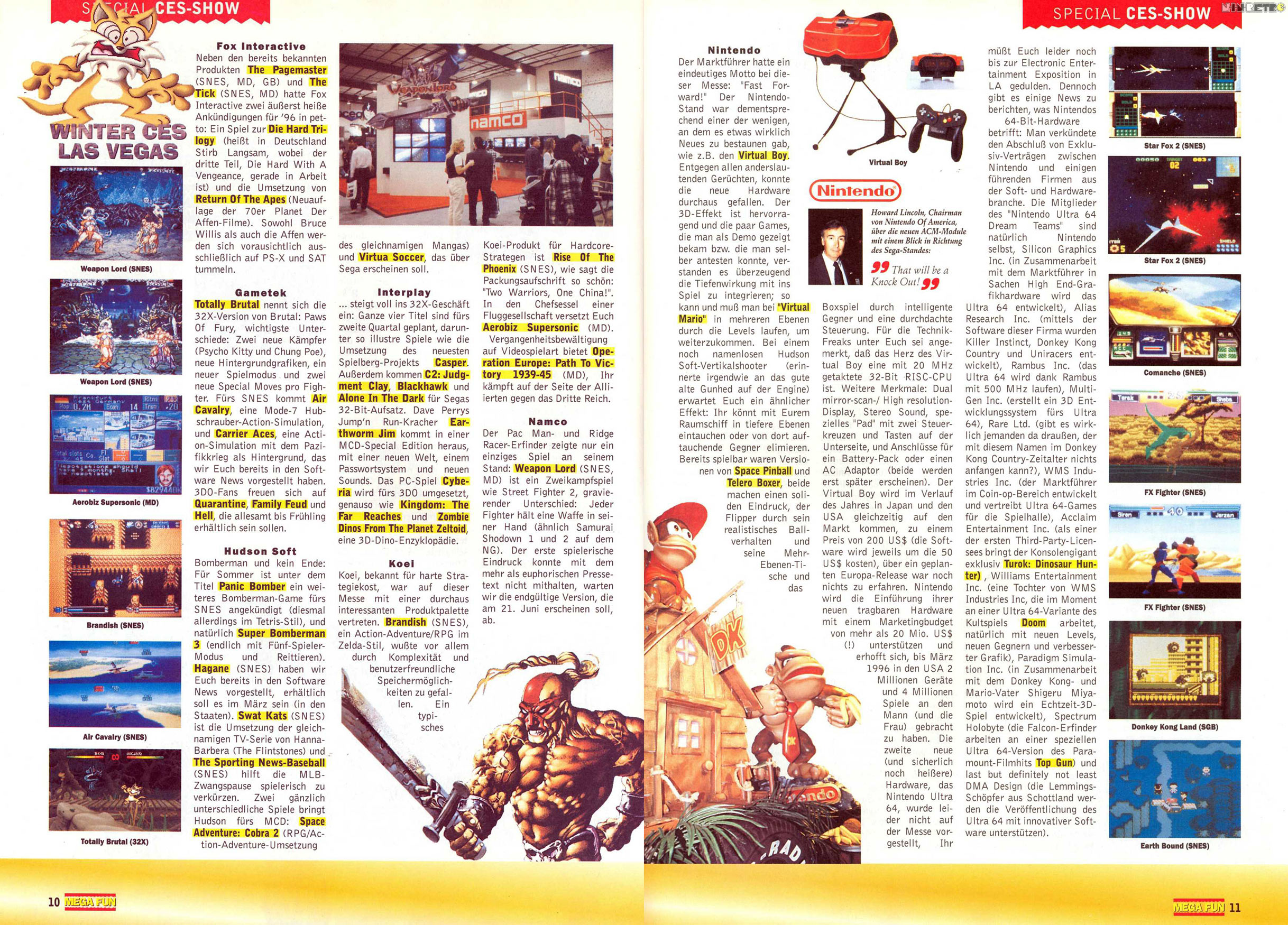 Solche Berichte habe ich damals immer sehr gespannt gelesen weil es quasi ein Fenster in die Zukunft war. Das Internet war 1995 noch ein Weilchen entfernt und diese Magazine waren für das Hobby Videospiele die einzige Möglichkeit sich gut zu informieren. In den Artikeln konnte man die Namen der nächsten Hits lesen und auf den Screenshots konnte man oft Grafik bewundern die man für "fotorealistisch" hielt