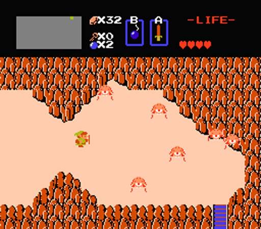 Where the only sound you'll hear is your own heart pounding as you race through forests, lakes, mountains and dungeonous mazes in an attempt to restore peace to the land of Hyrule. Along the way you'll be challenged by Tektites, Wizzrobes and an endless arry of ruthless creatures who'll stop at nothing to prevent you from finding the lost fragments of the Triforce of Wisdom. But don't despair. With a little luck and a lot of courage, you'll conquer your adversaries, unite the Triforce fragments and unravel the mystery of THE LEGEND OF ZELDA!