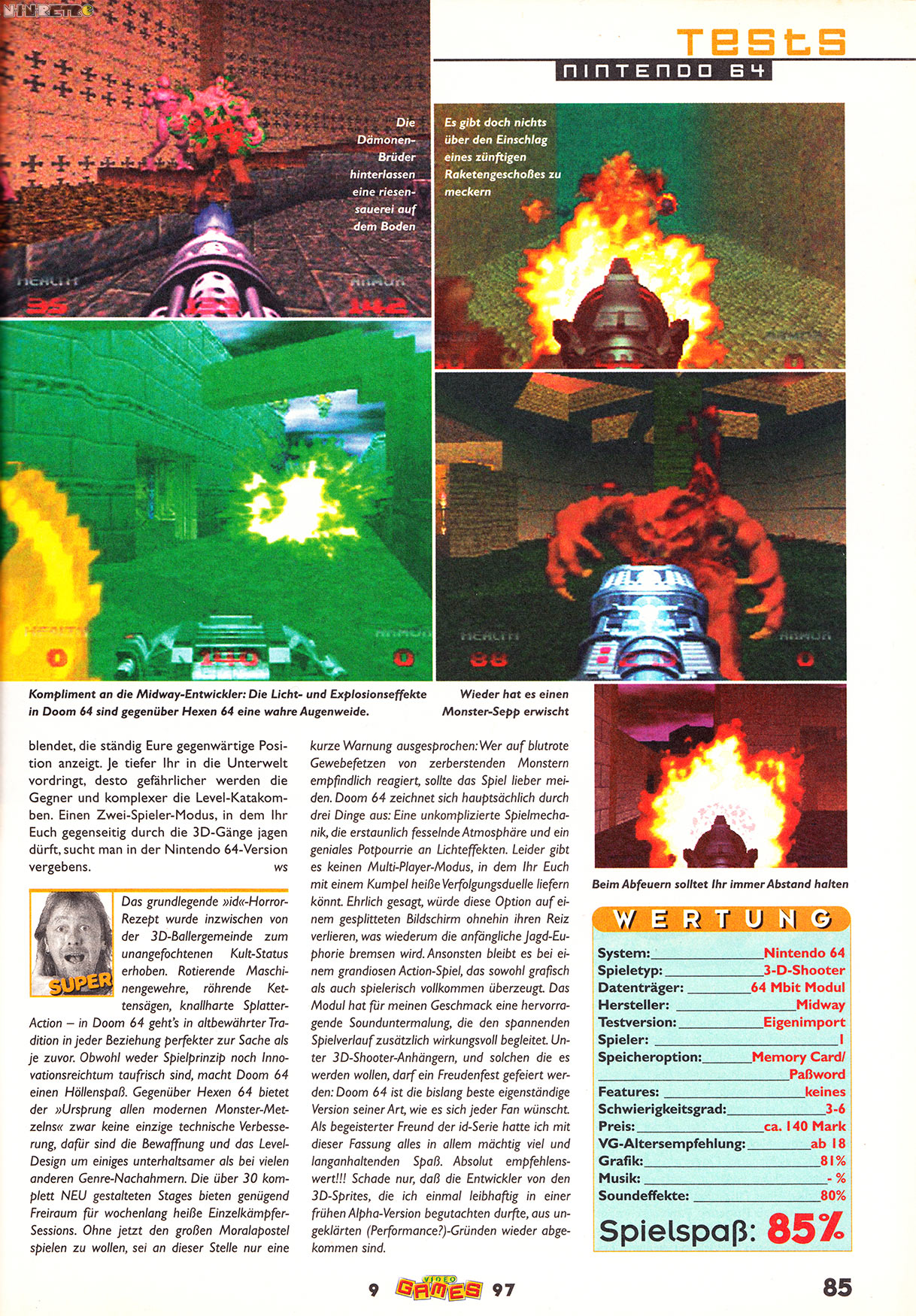 Diese Einsamkeit hat schon was. Nur wäre GERADE das N64 für ein 4-Player-Coop-DooM prädestiniert gewesen, siehe Hexen!
