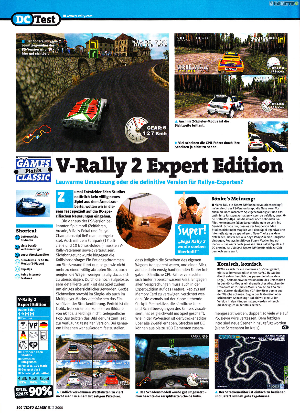 "V-RALLY 2 EXPERT EDITION IST OHNE ZWEIFEL DAS BESTE RALLYE SPIEL FÜR DREAMCAST!"