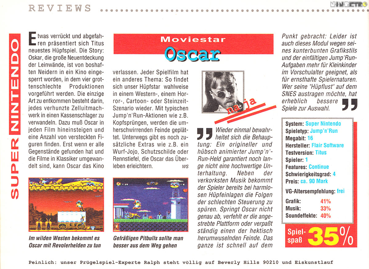 Während Oskar über die Filmbühnen schreitet, wechselt er ständig die Rolle und stellt sowohl einen Vampir als auch einen Cowboy des Wilden Westens dar, bevor er in andere Dimensionen, wie die Urgeschichte, eintritt.