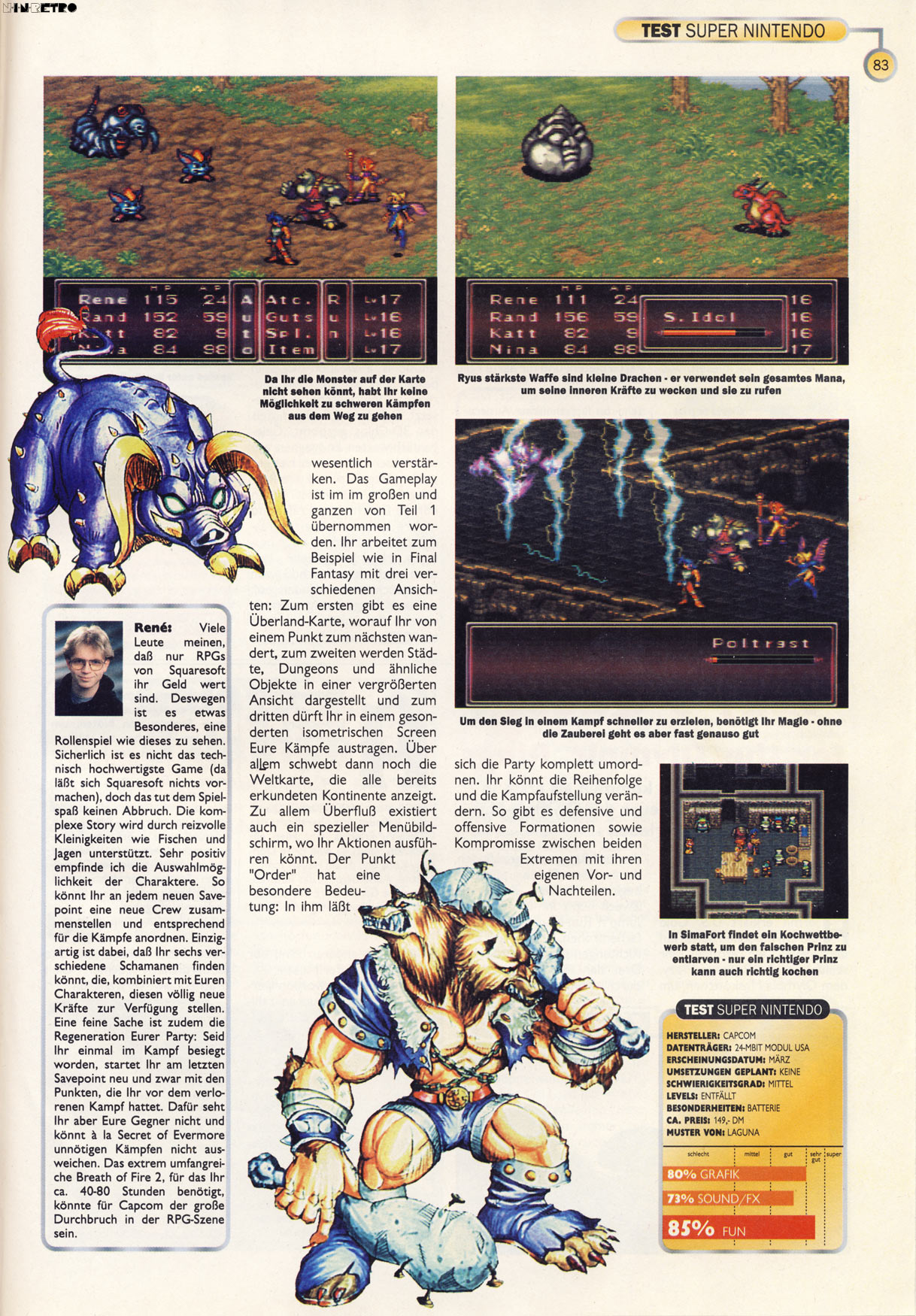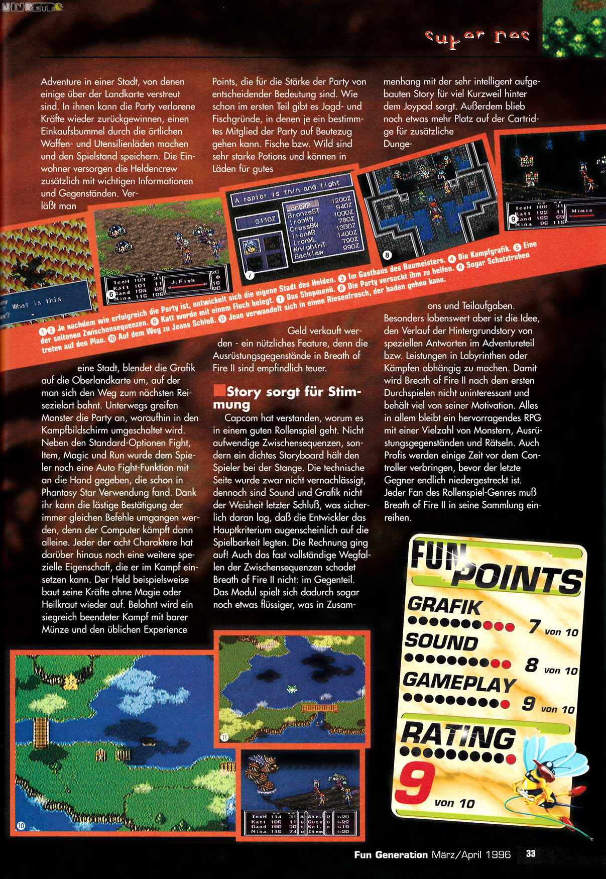 Breath of Fire II bot aber interessante Ideen, wie dem "Aufbau" eines Dorfs, diese Idee findet sich heute in Xenoblade Chronicles wieder (wollte fast Chronoblade Xenicles schreiben puh ).