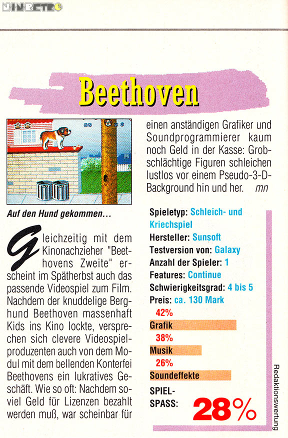 "Der digitale Filmhund Beethoven tippelt und stolziert durch die Levels wie ein ramponierter batteriebetriebener Stoffwauwau."