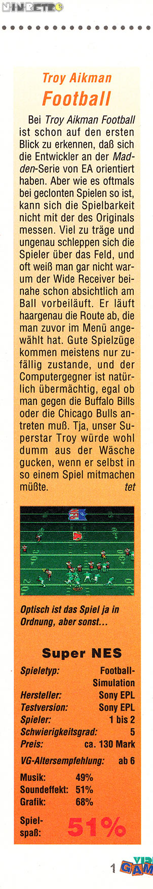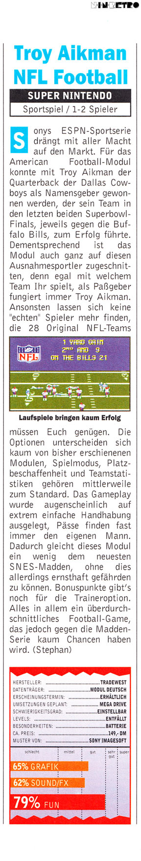 Spiele die ebenfalls dem "Troy Aikman NFL Football"-Franchise angehören: