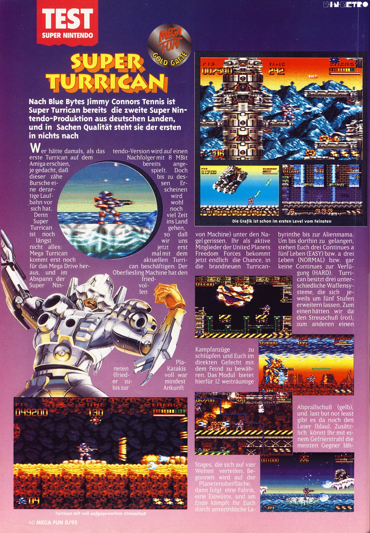 Super Turrican is one of the finest Action/Adventure games you'll ever see, feel, play or hear! Thats right, hear! With full-feature Dolby surround Sound, if the incredible graphics don't toast you, the sound alone is enough to turn your brain into a crispy critter.
