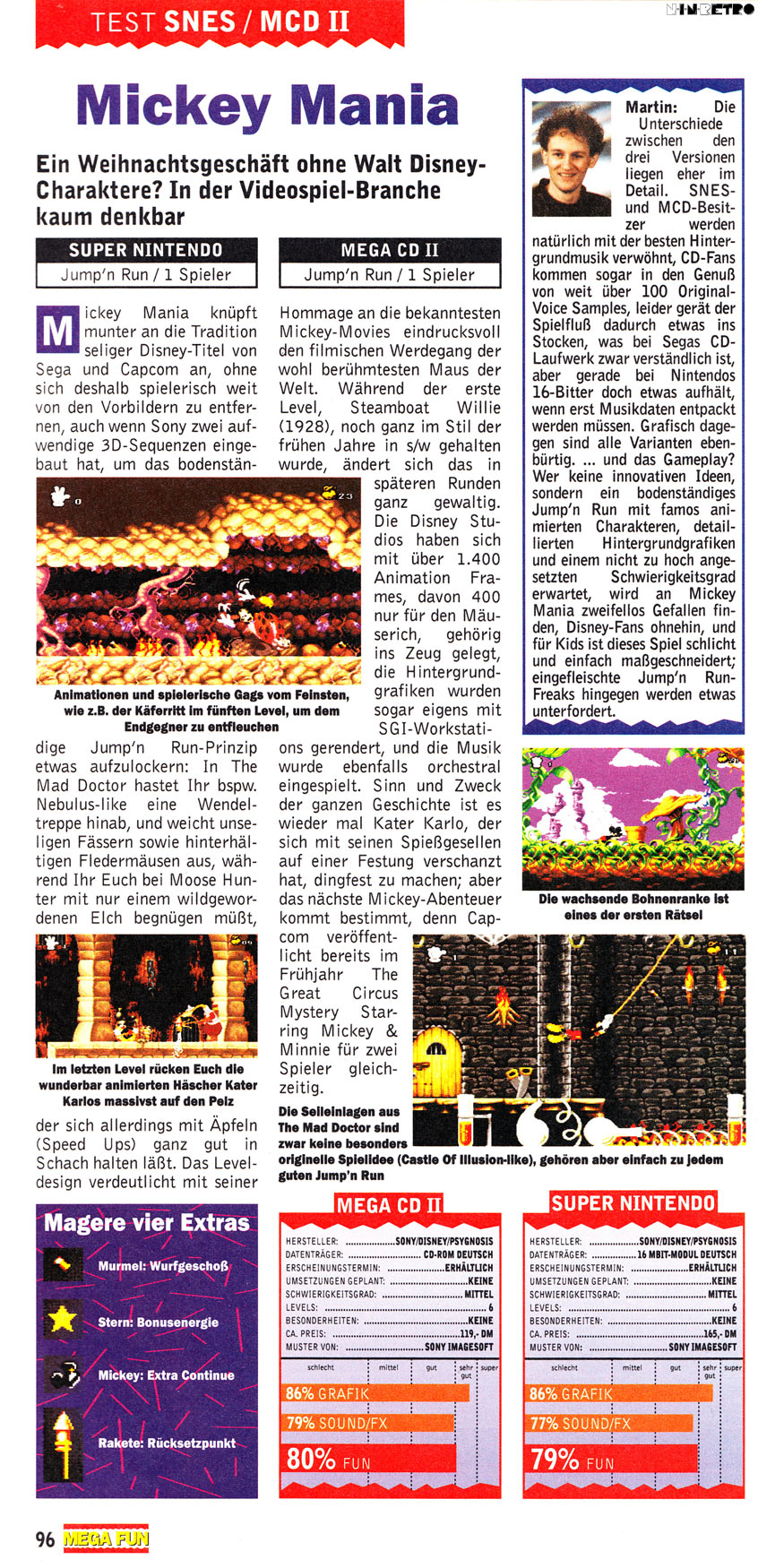 Da es sich hier um die SNES-Version von Mickey Mania handelt, bezog ich mich darauf, dass es auf dieser Plattform mit The Magical Quest ein meiner Meinung nach besseres Mickey-Mouse-Spiel gibt.