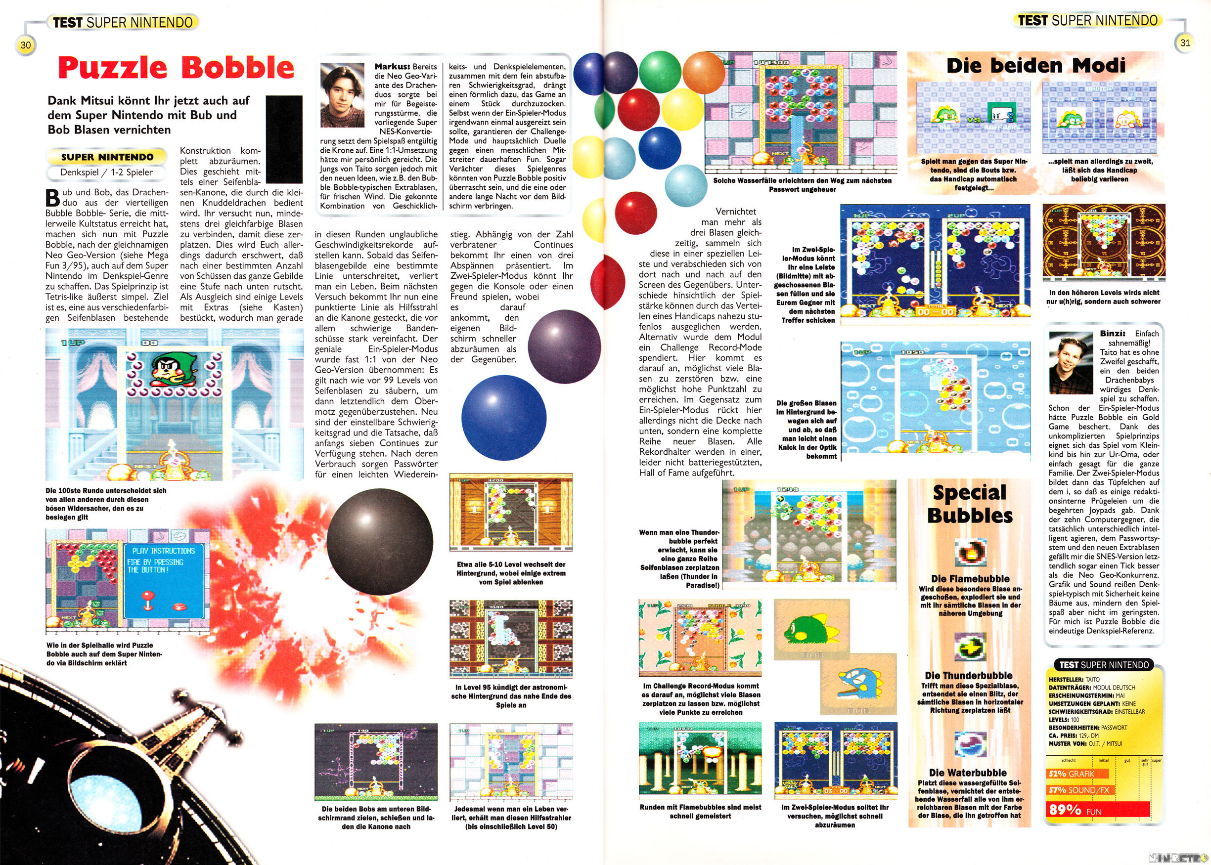 Innerhalb von zwei Monaten hat die TOTAL! Tetris & Dr. Mario und Puzzle Bobble getestet und letzteres doch tatsächlich besser bewertet, selbst das Gameplay. Setzen, sechs!