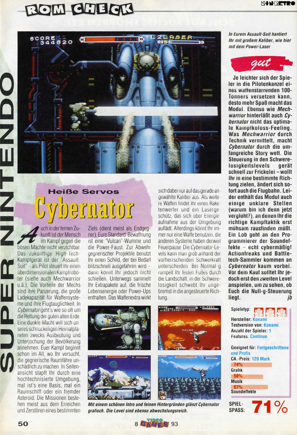 Mir hat Cybernator eigentlich ganz gut gefallen. Mit der Steuerung kam ich auch nicht so ganz klar, aber ich habe es auch nicht allzu lang gespielt.