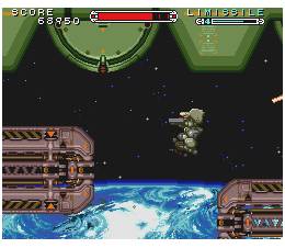 But you must fight on, toughing it out through 7 war zones stretching from the moon, through the expanses of space, to the fringes of Earth's fragile atmosphere. Crush Axis Cybertroops. Find your way through a dark mountain maze with only your wits and a small light. And capture power-ups that you can allocate to the Cybernator's four different weapons systems. Until you accomplish your mission. Or have your nuts and bolts plattered from here to eternity.