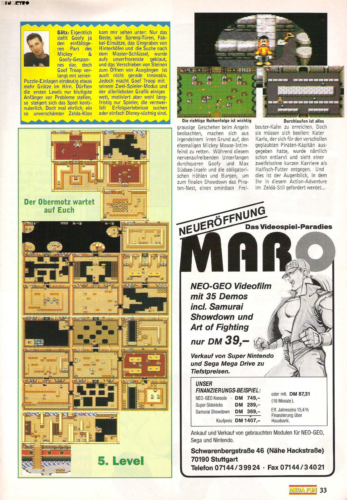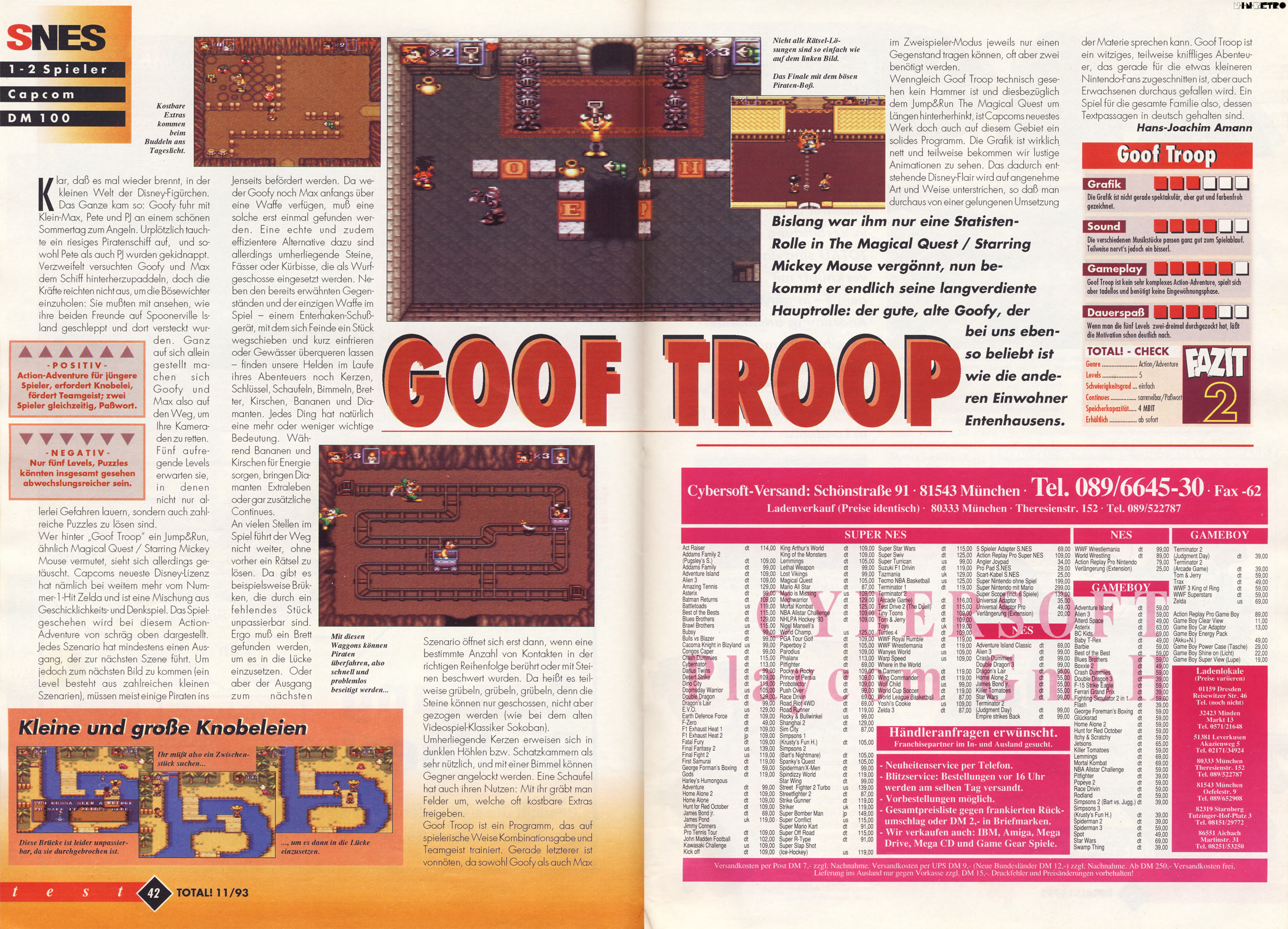 Auch ich fand die Rätsel damals grandios bei 'Goof Troop'. Besonders fasziniert hat mich, dass man das Spiel auch zu 2. im Team spielen konnte. Gerade bei Schieberätseln oder ähnlichem hat dies sehr viel Spaß gemacht. Selbst heute kann ich das Spiel noch zum spielen weiterempfehlen!