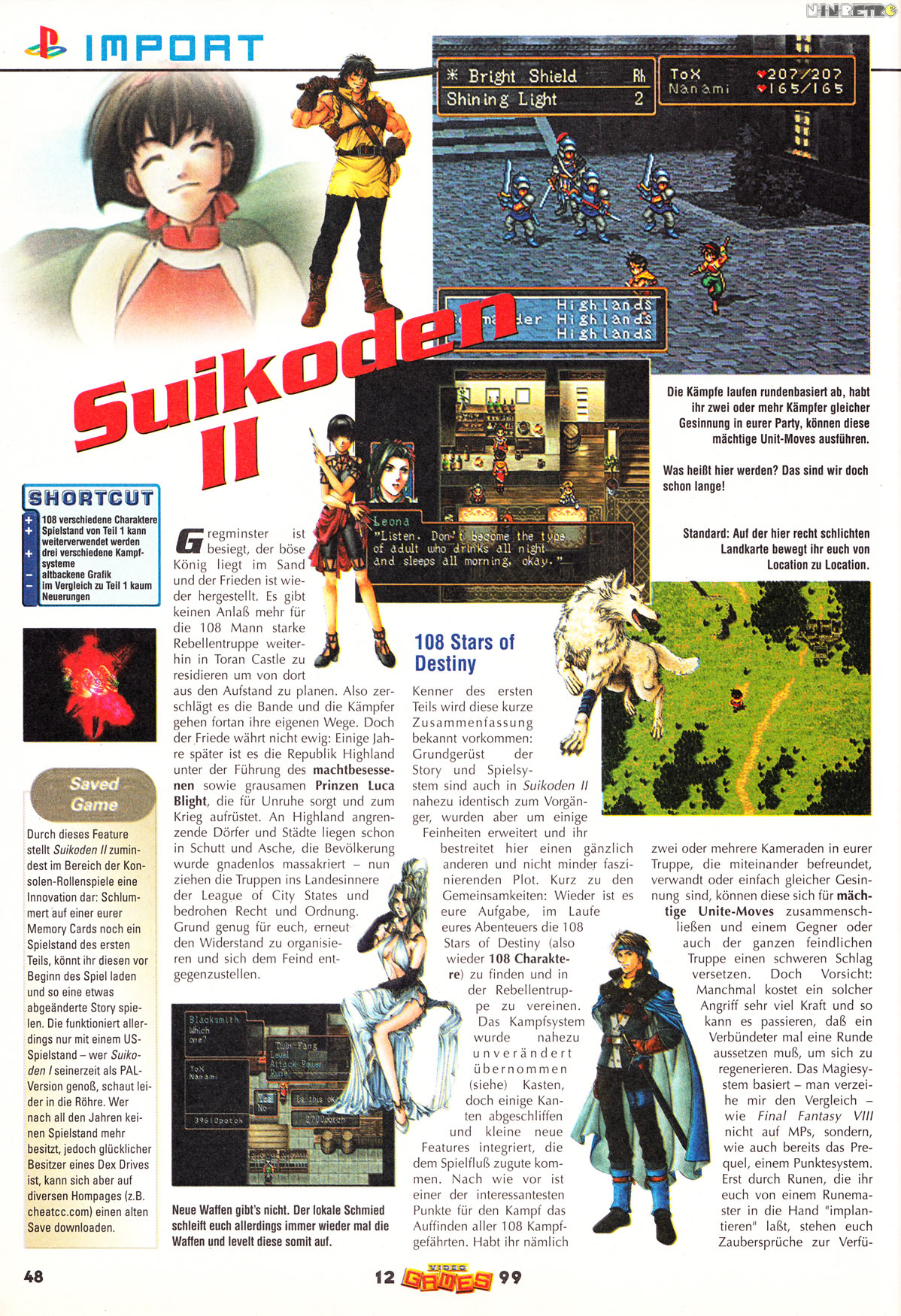 Viele regen sich über Karels von der VG auf, aber René von der Mega Fun ist mein persönlicher Favorit wenn es um kaum nachzuvollziehende Testergebnisse geht. Ich meine 74 Prozent für Suikoden II? Und ausschlaggebend dafür ist nicht so tolle Grafik?! Wieso der Sound ebenso mittelmäßig bewertet wurde, kann ich fast noch weniger verstehen, denn ich finde ihn überdurchschnittlich gut.