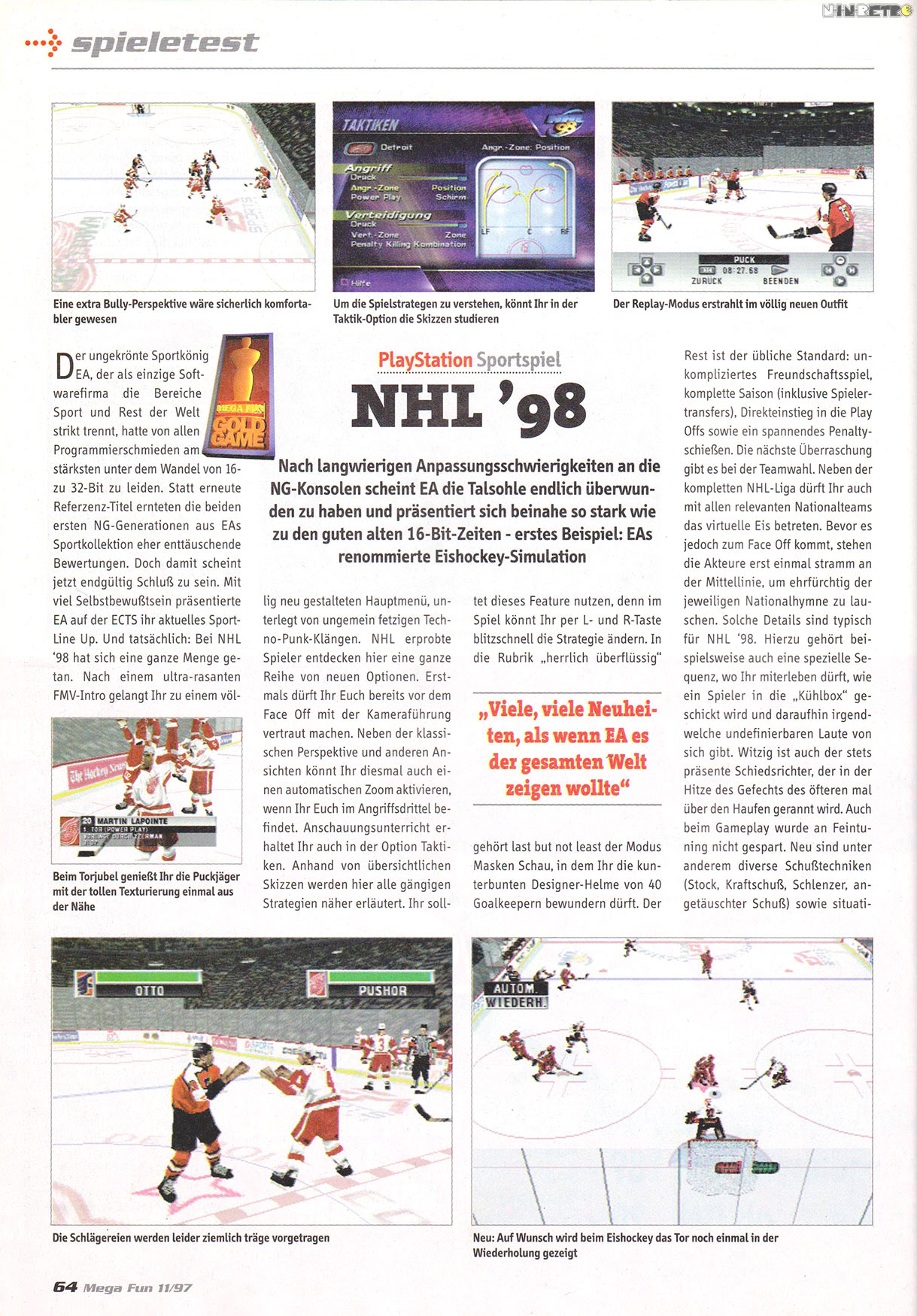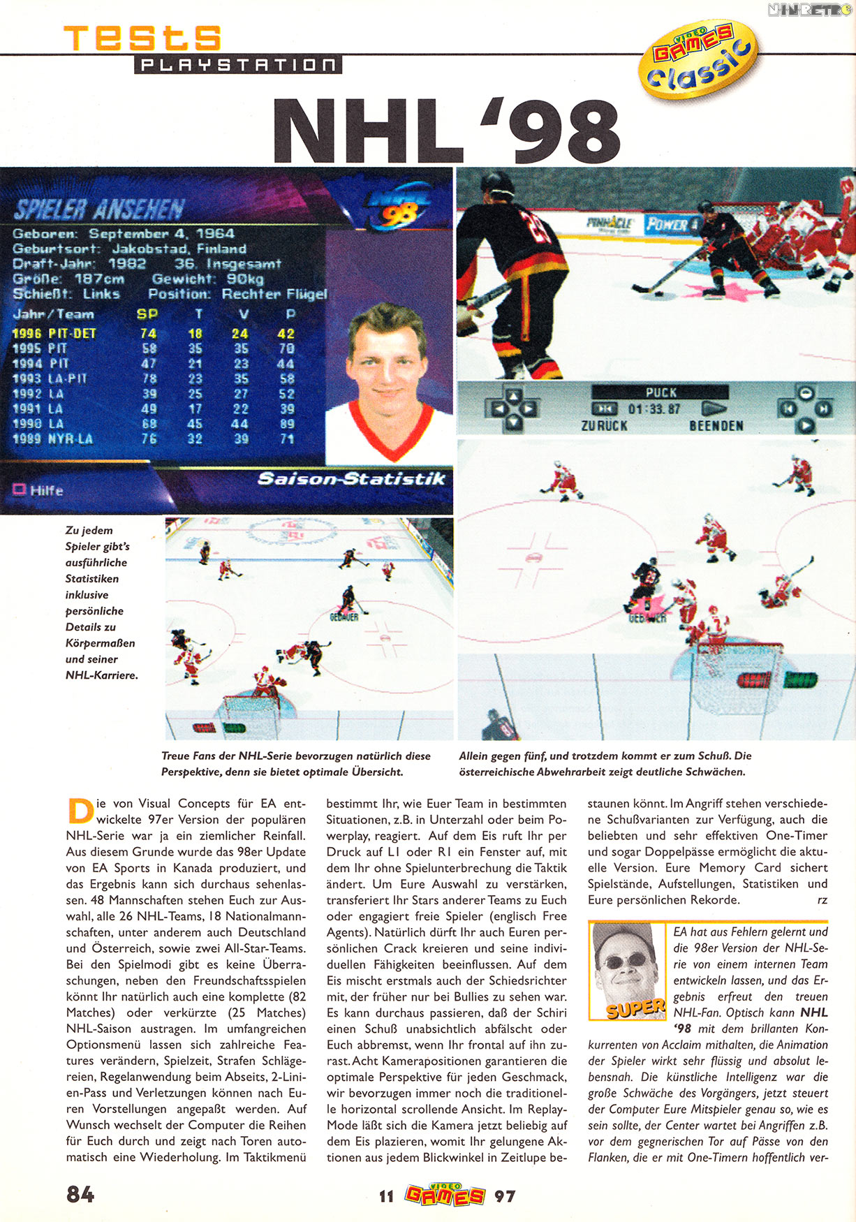 "NHL 98 CHECKS THE COMPETITION THROUGH THE BOARDS."