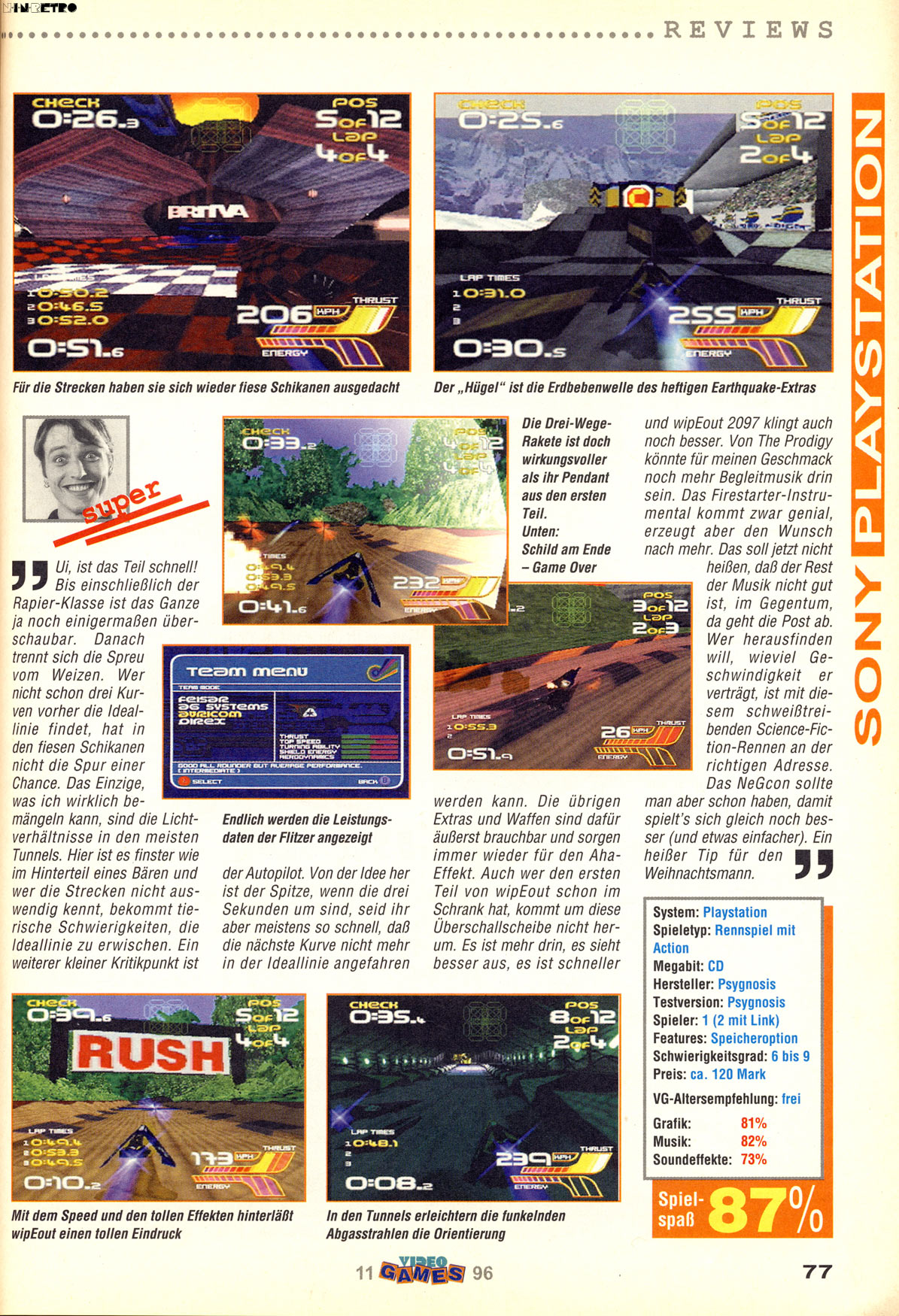 Ich fands damals saugut, den OST hör ich heute noch ab und an. Besser fand ich dann allerdings noch Extreme-G auf dem N64, das ich immer ohne Waffen rein auf Geschwindigkeit gespielt habe. Das war von der Steuerung einfach noch smoother. Gealtert sind meiner Ansicht nach beide Spiele sehr schlecht.