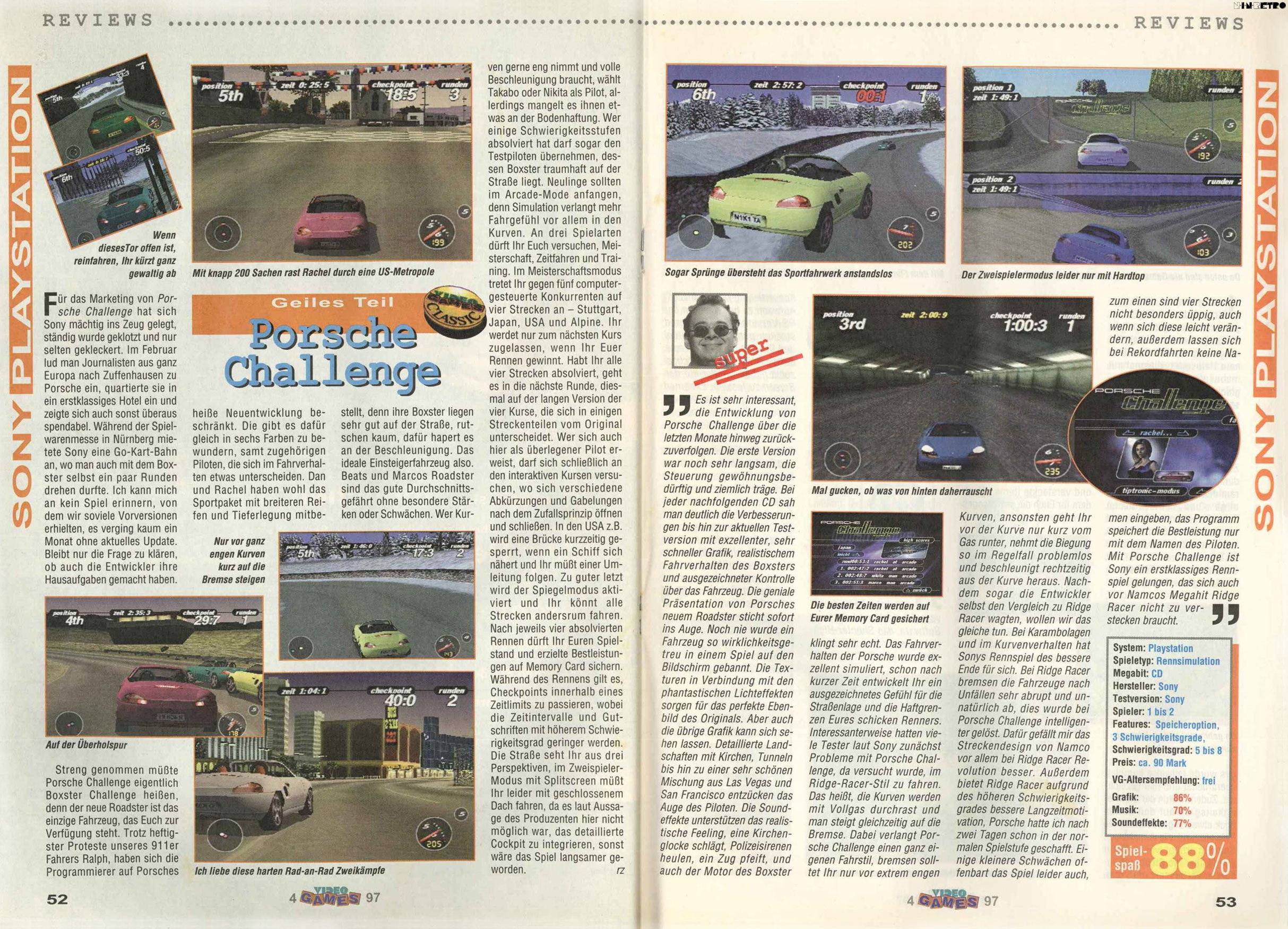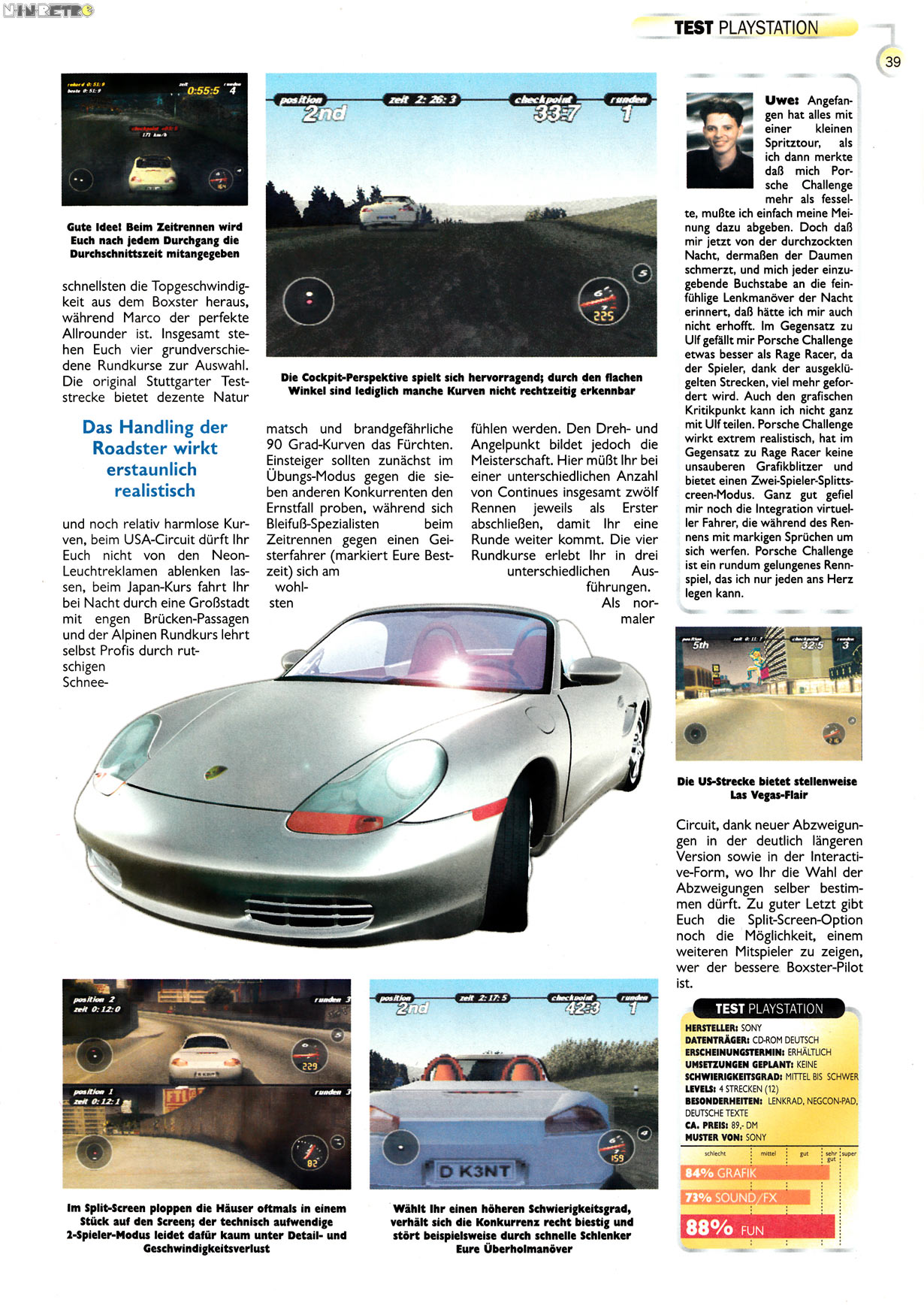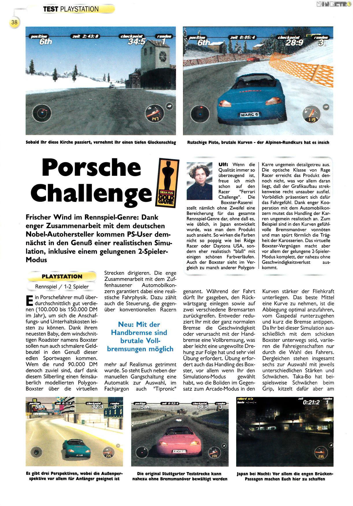 Schöne Graphik (bis auf einige Pop-Ups), gute Steuerung, in einer Winterlandschaft Cabrio fahren und abwechslungsreiche Strecken. Porsche Challenge konnte das alles bieten, aber ein Geschwindigkeitsrausch hat sich bei mir nie eingestellt.