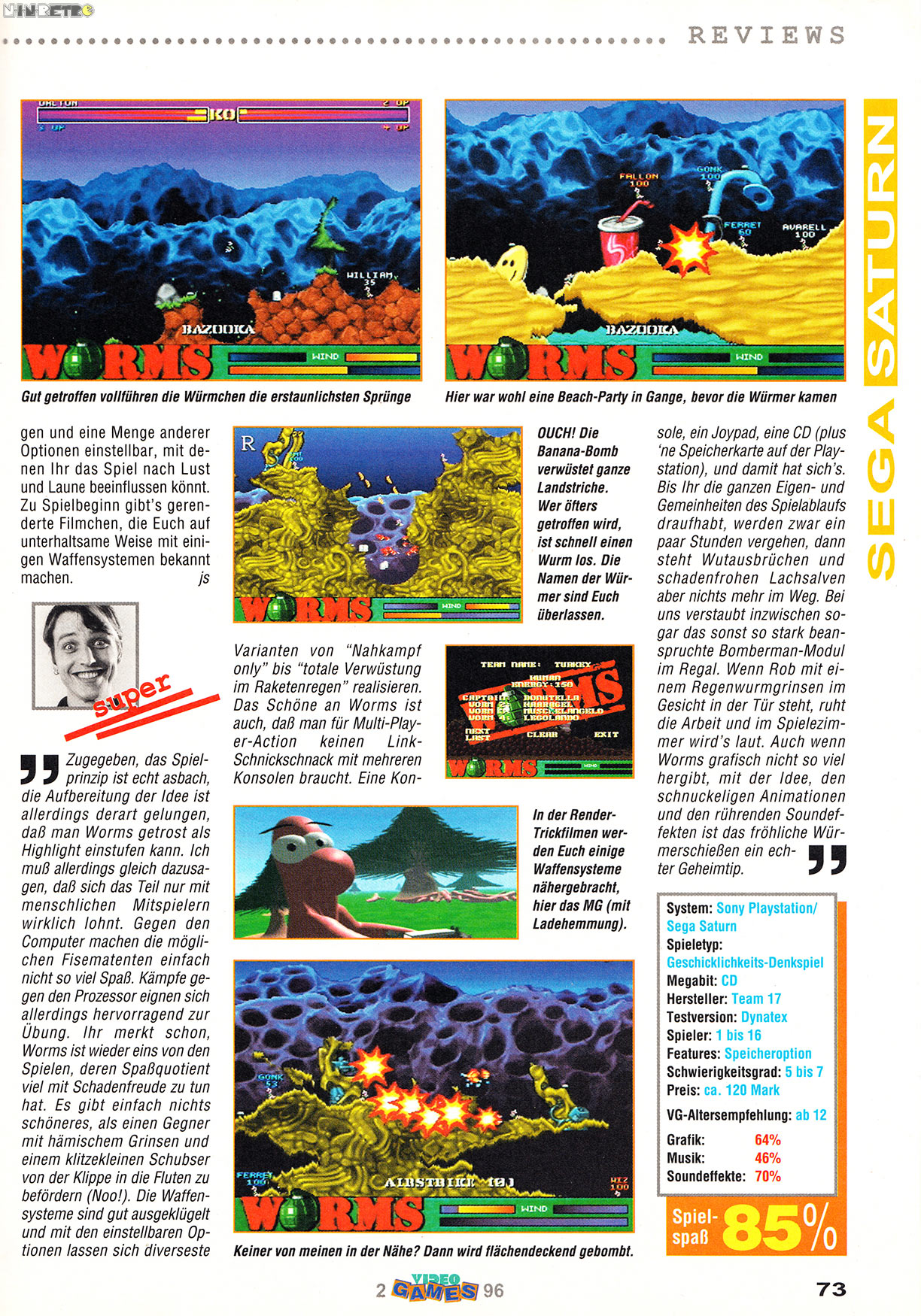 Das Spiel haben wir früher nur zu 4 gezockt, epische Schlachten sag ich nur. War damals echt genial nur Solo wars net ganz so pricklend aber durchaus spielbar. Wurde Später nur von Hogs of War/Frontschweine noch übertroffen, ist natürlich nur meine subjektive Meinung.