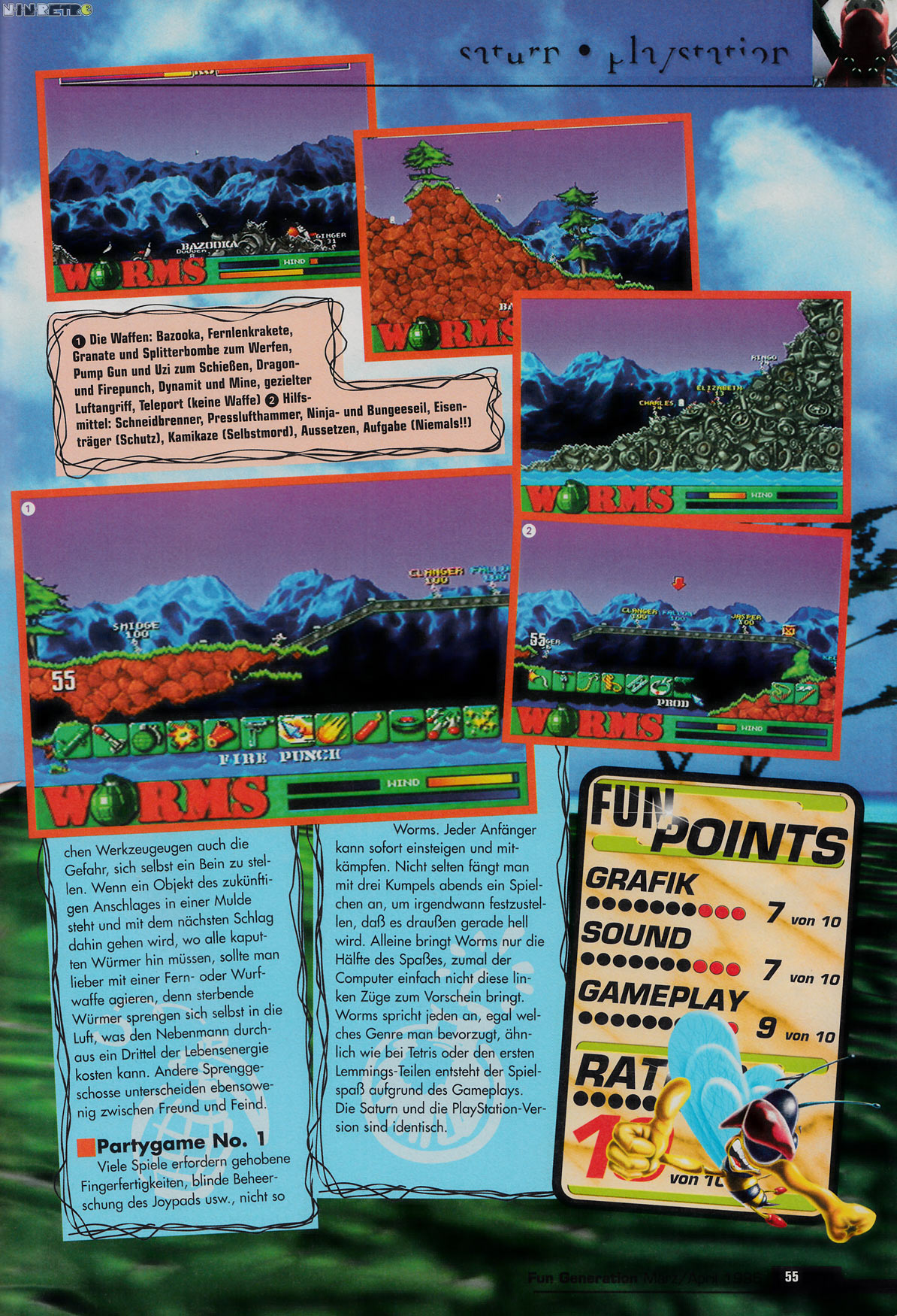 Laß Deine Freunde in den Tiefen der Marsbrühe versinken oder laß sie in den Lavagruben des Hades schmoren. Bring Deine Schlauheit ein in den absoluten Mißbrauch von Strategie und Anstand des am meisten süchtig machenden Spiels aller Zeiten, das Würmer heißt!