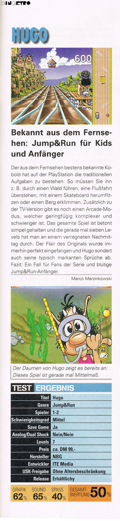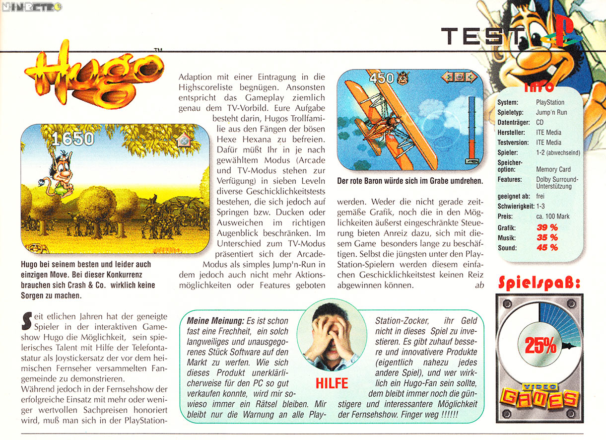 Wenn mich nicht alles täuscht, wurde für das PSX-Spiel aber ein anderer Sprecher für Hugo verwendet als in der TV-Show. Finde ich irgendwie schade, auch wenn das das Spiel nicht besser gemacht hätte. ;)