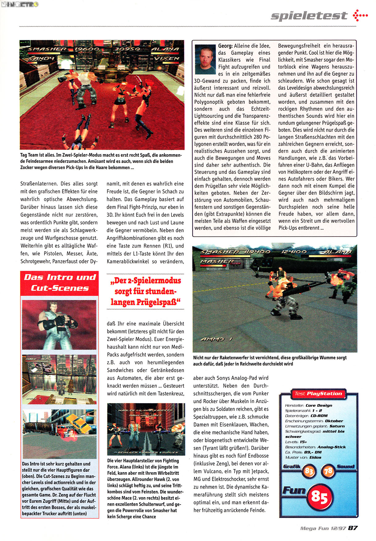 Trotz einer dezenten Eintönigkeit zum Ende hin, macht Fighting Force besonders zu zweit viel Spaß und ist alles in allem ein gutes Spiel.