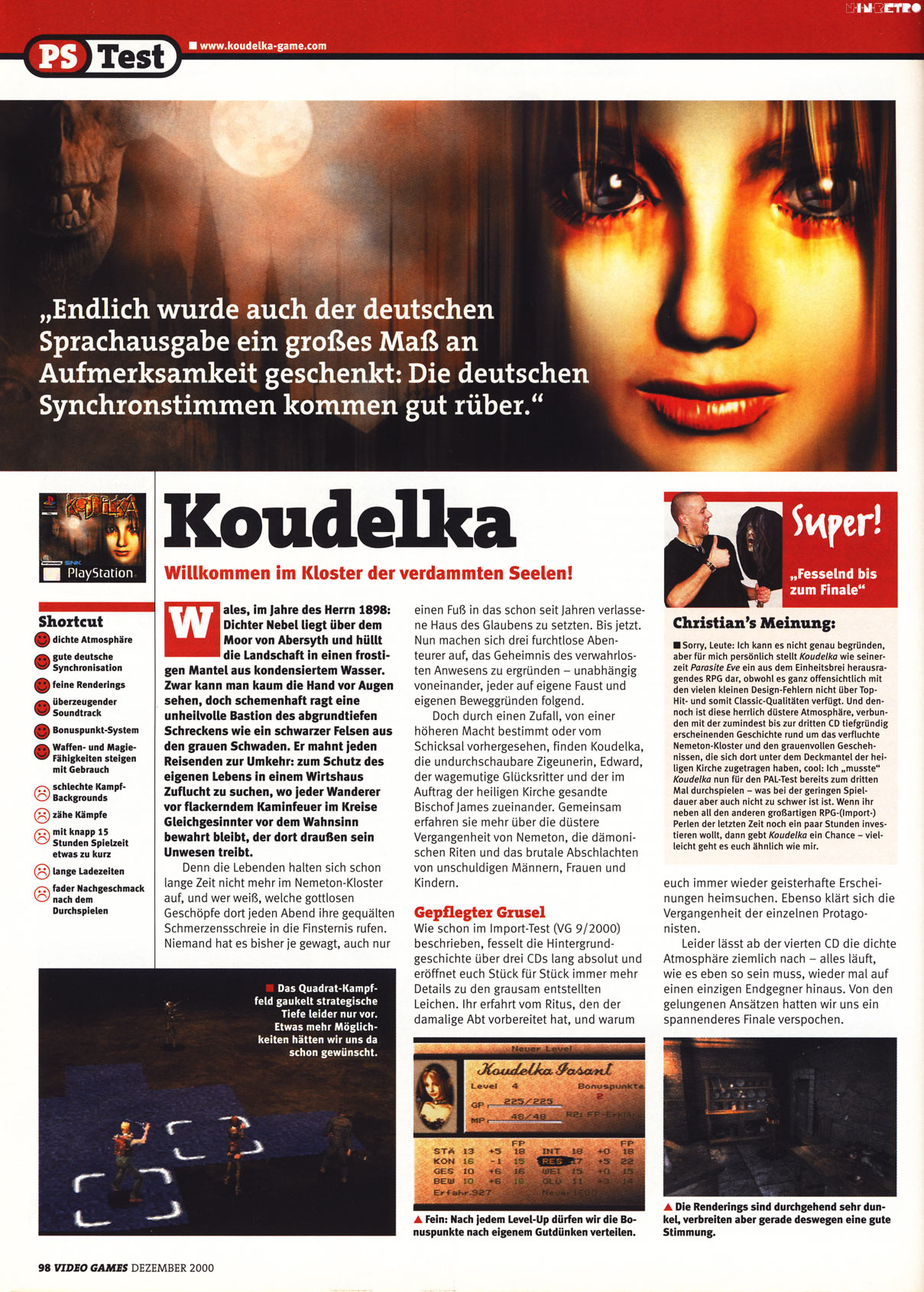 Wales, Großbritannien, im Jahre 1898. Mit einer Party von drei Charakteren, unter ihnen das zauberhafte Medium Koudelka, erkunden Sie das abgelegene, düstere und mysteriöse Kloster Nemeton. Unaufhaltsam werden Sie in ein bizarres Abenteuer voller Hexerei und Magie gezogen.