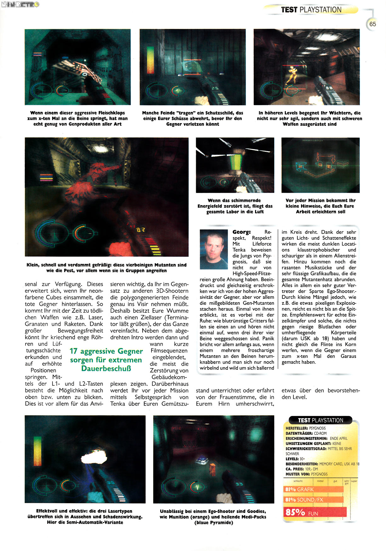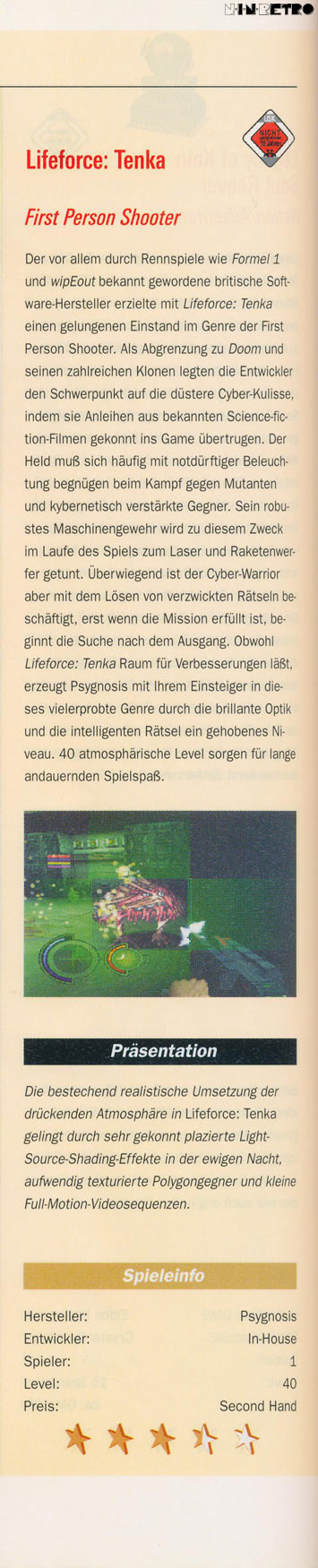 Lifeforce Tenka war mein erster Egoshooter. Das Spiel habe ich mir Anfang 1998 aufgrund des Tests in der neXt Level gekauft.