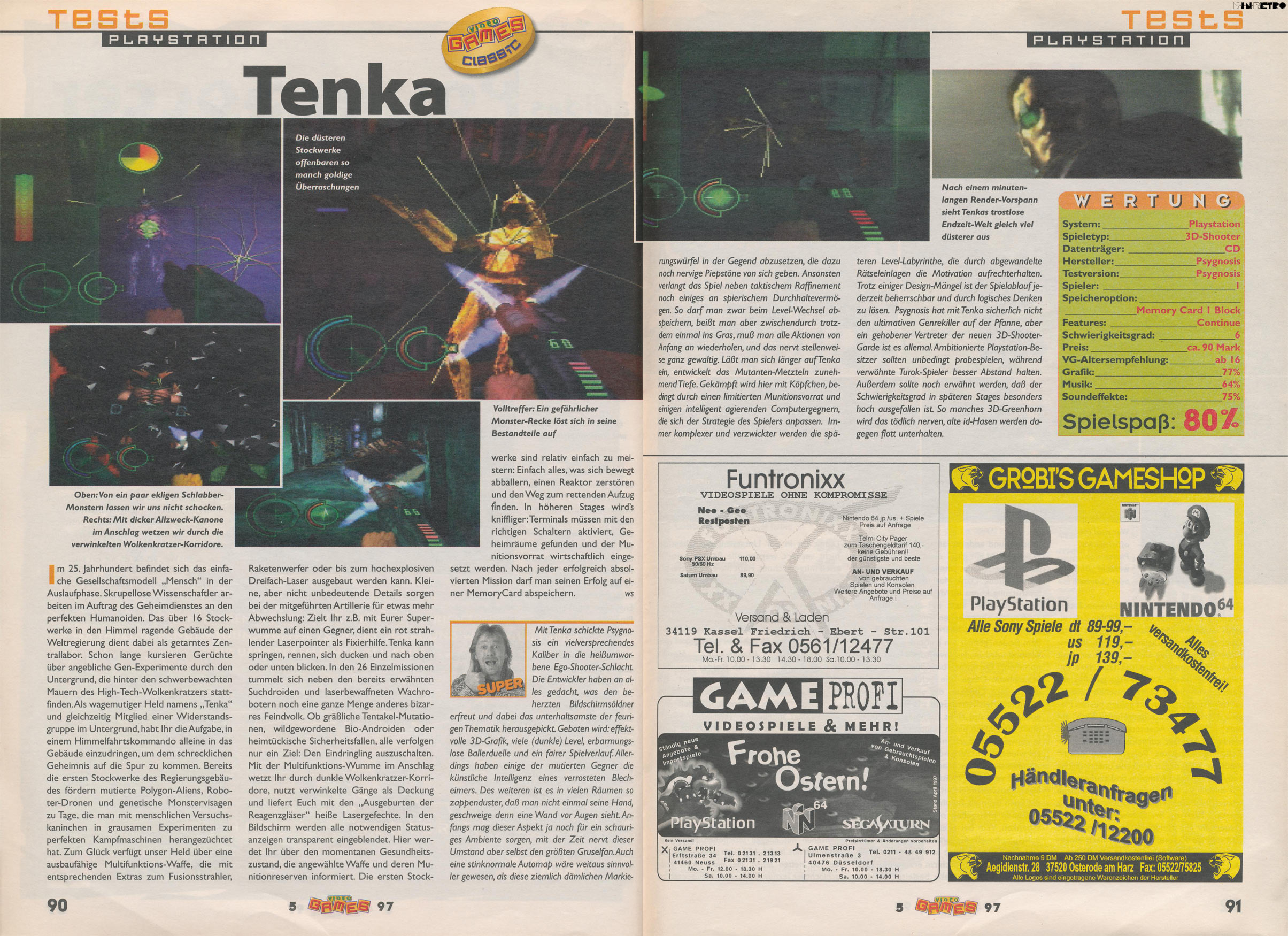 Mit Quake hast du Recht, aber GoldenEye ist erst ein paar Monate nach Tenka erschienen. Turok könnte man noch nennen, das wurde kurz zuvor veröffentlicht. Auf der PSX könnte Tenka aber tatsächlich der erste FPS mit 3D-Gegnern gewesen sein.