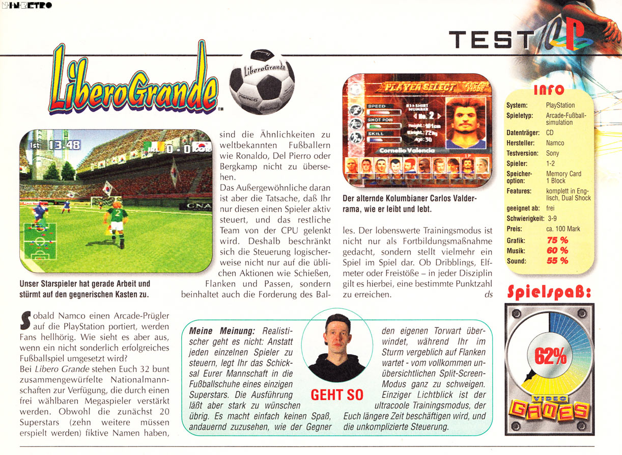 Libero Grande takes you out of the commentary box, and positions YOU as the star player in any one of 32 World-Class teams - the closest you can get to being out on the pitch.