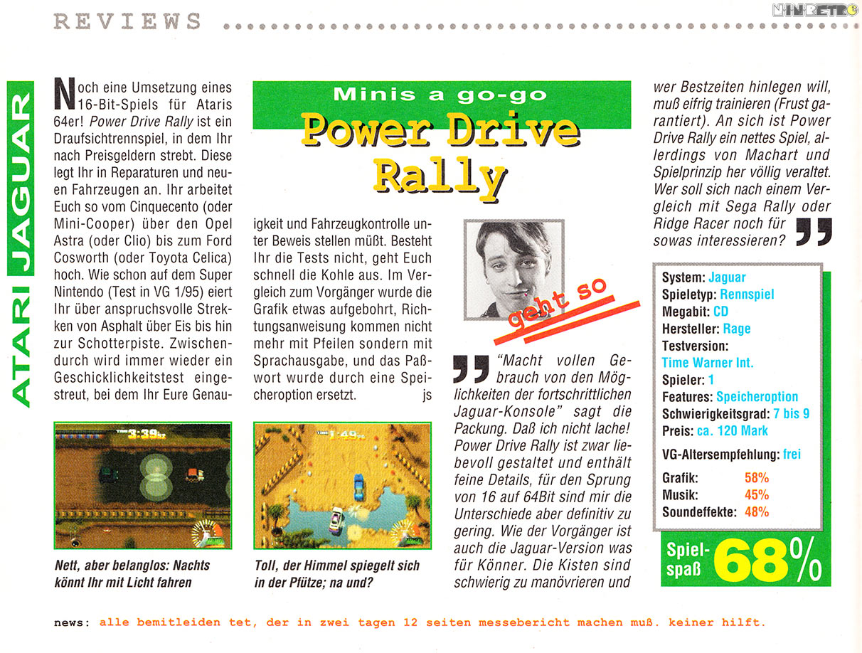 Bzgl. des Testberichts in der Video Games hatte das Spiel wohl auch das Pech, ausgerechnet in der Zeit zu erscheinen, in der alle Magazine im 3D-Hype wegen PSX/Saturn waren. Da kann man zumindest ein wenig nachvollziehen, dass man das Ganze zumindest damals als technisch veraltet angesehen hat. Heutzutage ist das zum Glück oft nicht mehr ganz so und 2D-Grafik ist mehr oder weniger wieder IN, zumindest auf einige Plattformen.