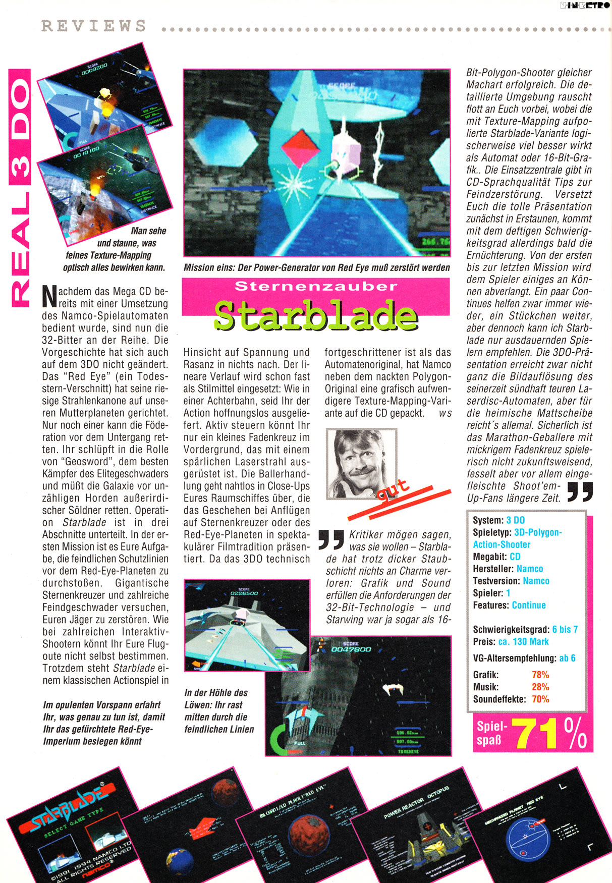 Ported over directly from one of the world's hottest arcade games, StarBlade lets you choose Arcade Mode or the 3DO mode enhanced with bitmaps to bring new life to the story.