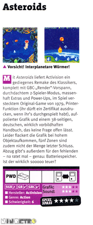 Zum anderen fehlt auch mir die Speicherbatterie für die Highscorejagd und eine bessere Unterstützung des Super Game Boys (vielleicht wie bei Space Invaders) für das Arcadegefühl.