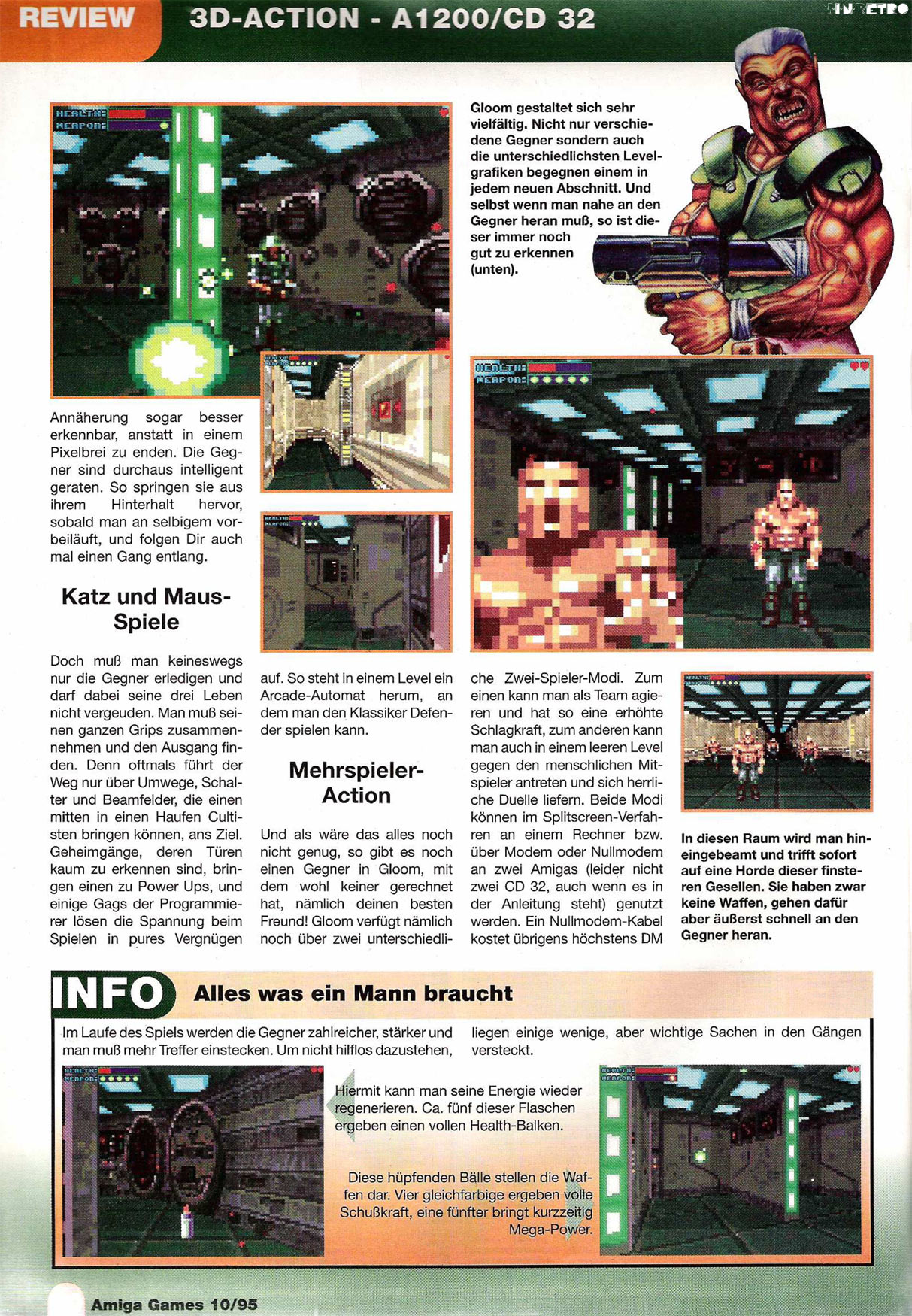 "Gloom will brighten up anyone's day with its gung-ho action and atmosphere. Totally addictive game play makes this the bees knees. Miss it at your peril." CD32 Gamer Gold Medal Award 93%