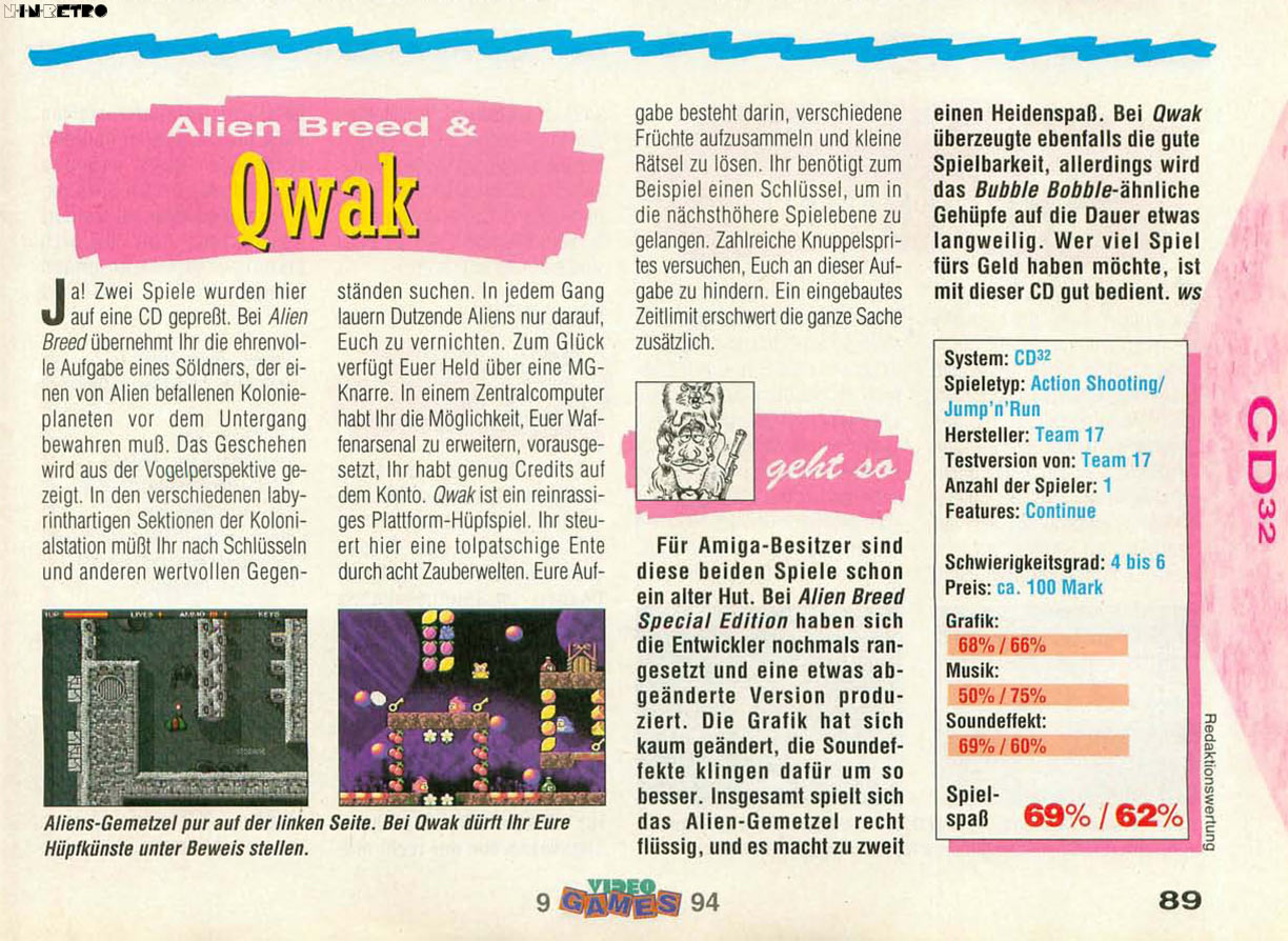 For 1 of 2 players, this stunning new edition of the now classic "ALIEN BREED" game features huge levels, new missions and much, much more. That represents a supreme challenge to new and old players alike.