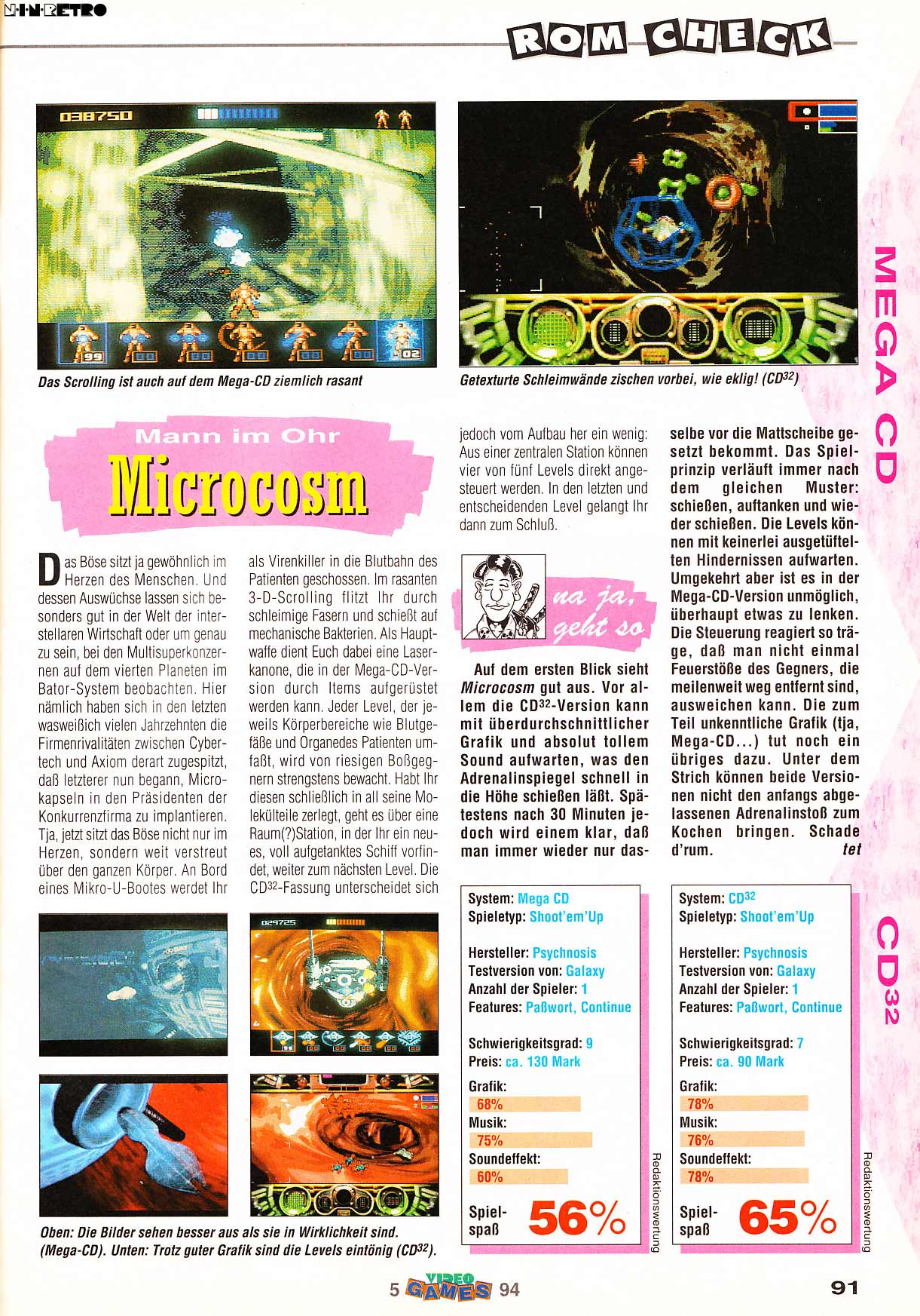 Microcosm plunges you into a dazzling world of super-realistic computer generated graphics set deep within the body of Cybertech's president; Tiron Korsby. You are the elite Cybertech agent chosen to pilot the latest high-tech micro-submersibles on a desperate mission to find and destroy the deadly brain manipulation droid threatening Korsby's life.