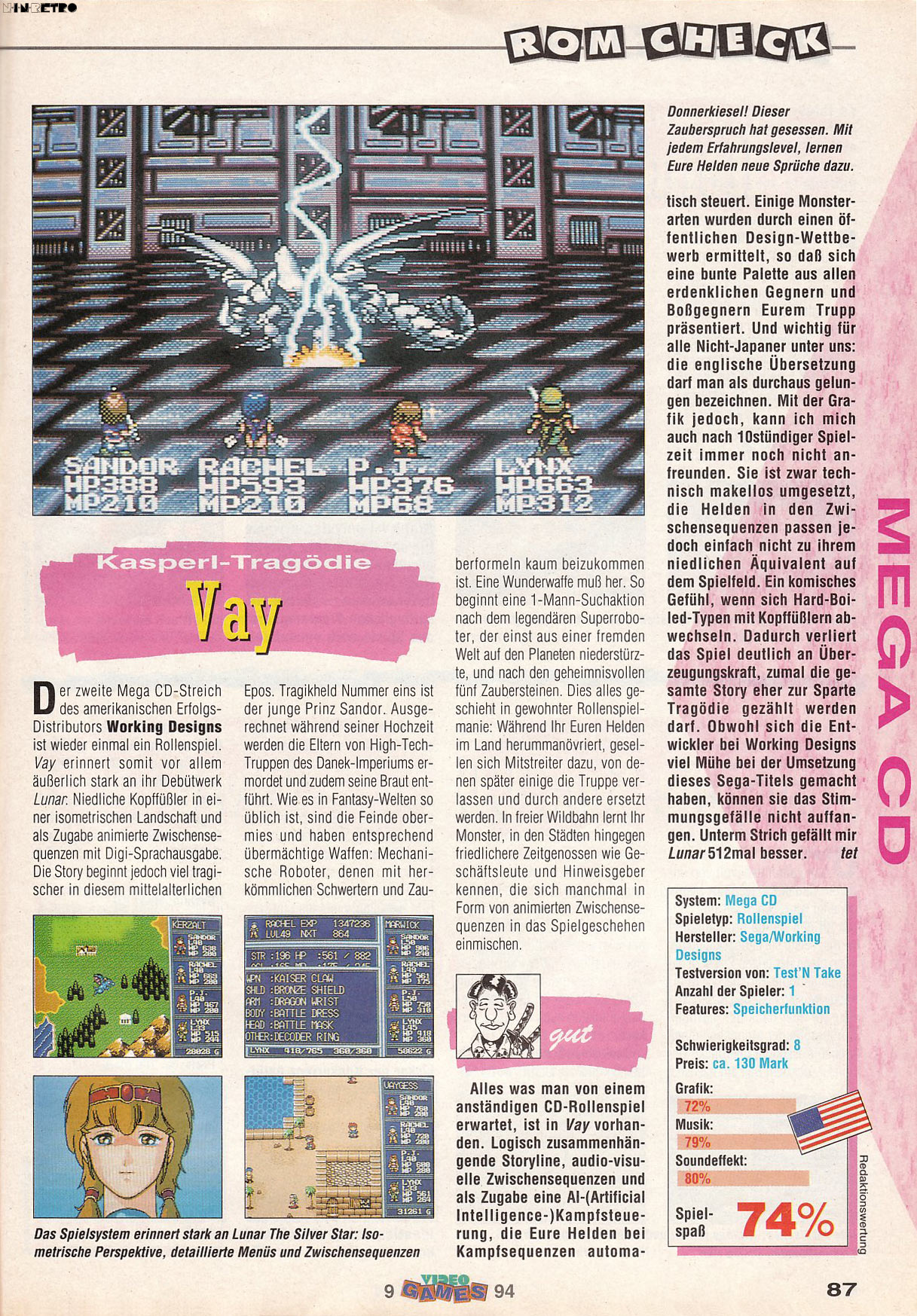 Neben den beiden Lunar-Teilen ist Vay auf dem Mega-CD ein solides und gut inszeniertes jRPG. Es kommt nicht an die beiden starken Konkurenten heran, reiht sich aber genau dahinter ein. Es spielt sich auch genauso. Die Story finde ich aber konfus und nicht so dolle. Die Musik hingegen ist richtig gut. jRPG-Fans sollten auf jeden Fall einen Blick riskieren, ich war angenehm überrascht.