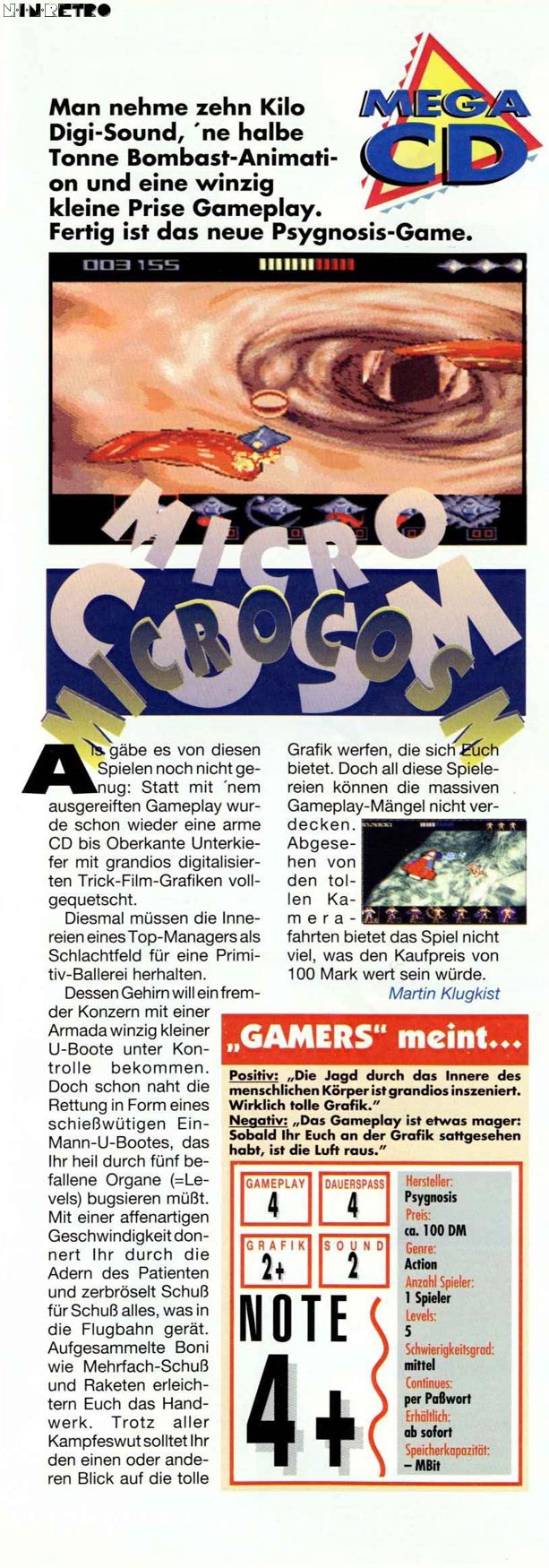 Microcosm plunges you into a dazzling world of super-realistic computer generated graphics set deep within the body of Cybertech's president; Tiron Korsby. You are the elite Cybertech agent chosen to pilot the latest high-tech micro-submersibles on a desperate mission to find and destroy the deadly brain manipulation droid threatening Korsby's life.