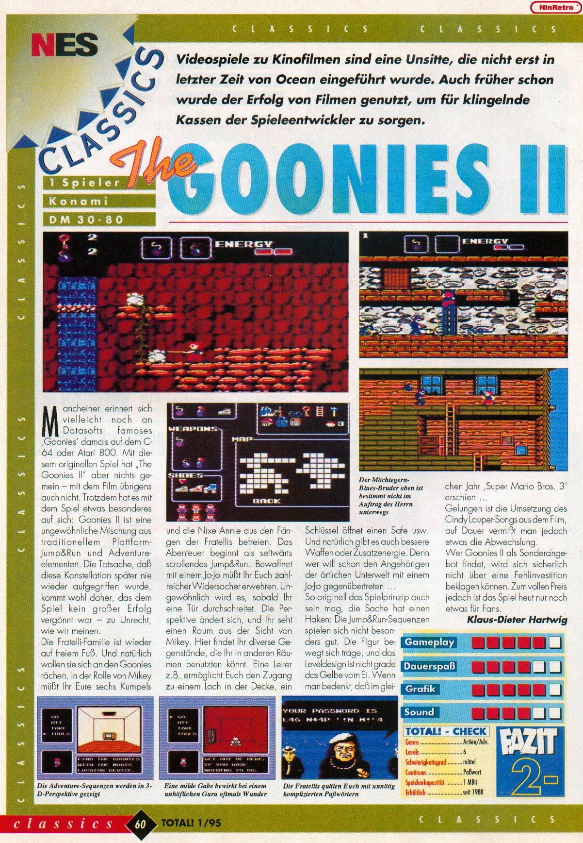 "The Goonies II" ist insgesamt einfacher als die meisten anderen Action-Adventures auf dem NES (keine Endgegner, Continues ohne Ende). Gefällt mir fast noch besser als "Metroid".