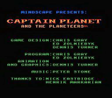 Oil spills. Air pollution. Endangered animals. The award-winning TV show, Captain Planet & The Planeteers, has turned saving the Earth's environment into the ultimate adventure. Now it's your turn to go up against the most dangerous enemies our environment has ever faced. Looten Plunder. Duke Nukem. Dr. Blight... and more. The forces of Earth, Fire, Wind, Water and Heart are yours! Put them together and become Captain Planet. Your Eco-Copter is waiting!