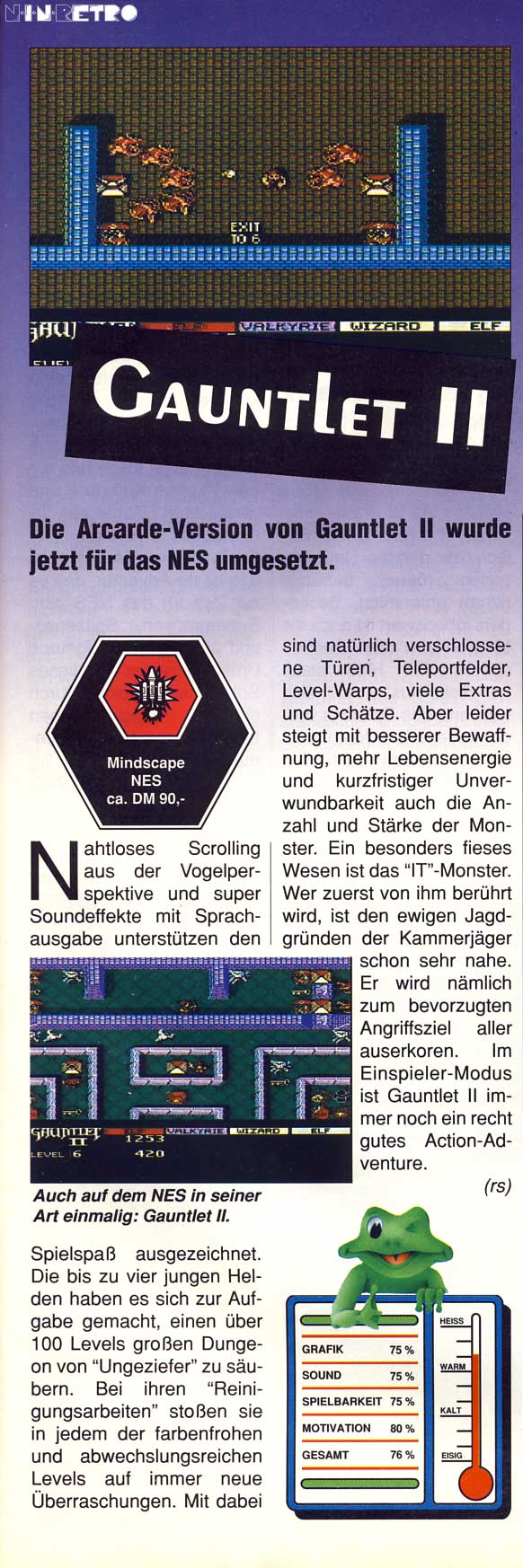 Früher oft zu zweit bei einem Kumpel gespielt, war wirklich recht spaßig und hatte irre viele Levels... weiß jetzt gar nicht, ob wir Gauntlet II jemals komplett durchgespielt haben. Nur die Soundeffekte fand ich z.T. arg schräg. Z.B. das furchtbare Geräusch, wenn man über solche Fallen (?) bzw. die leuchtenden Bodenplatten, lief oder wenn man Essen aufgesammelt hat (was so gar nicht nach essen klang, sondern nach was anderem ). Na ja, aber wahrscheinlich sind gerade diese Soundeffekte kult, k.a.