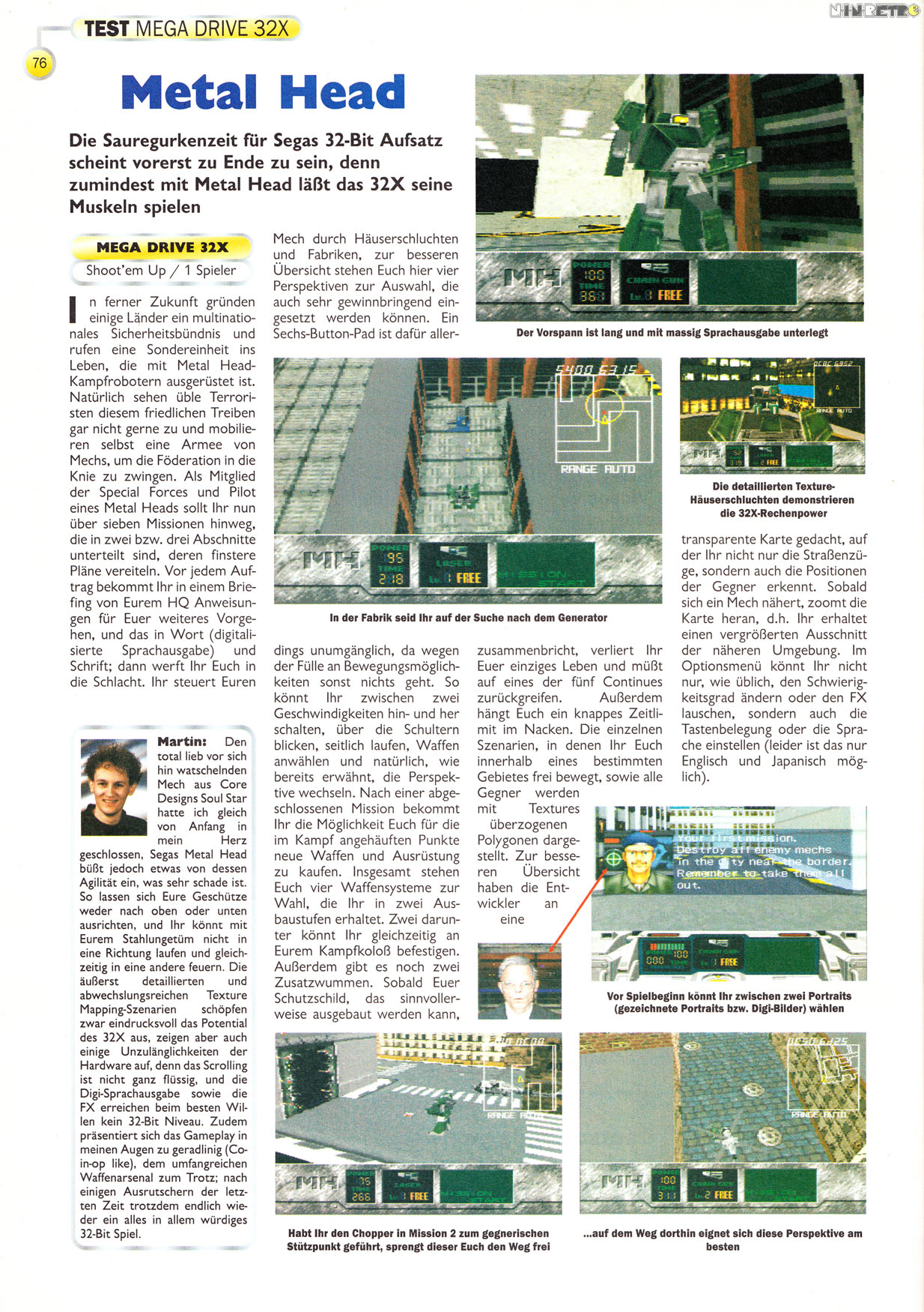 Falls ich jemals noch ein 32X besitzen sollte steht Metal Head aber auf meiner Must-Have-Liste. Übrigens gibt es - mal wieder - gravierende Unterschiede zwischen der japanischen und den westlichen Versionen.
