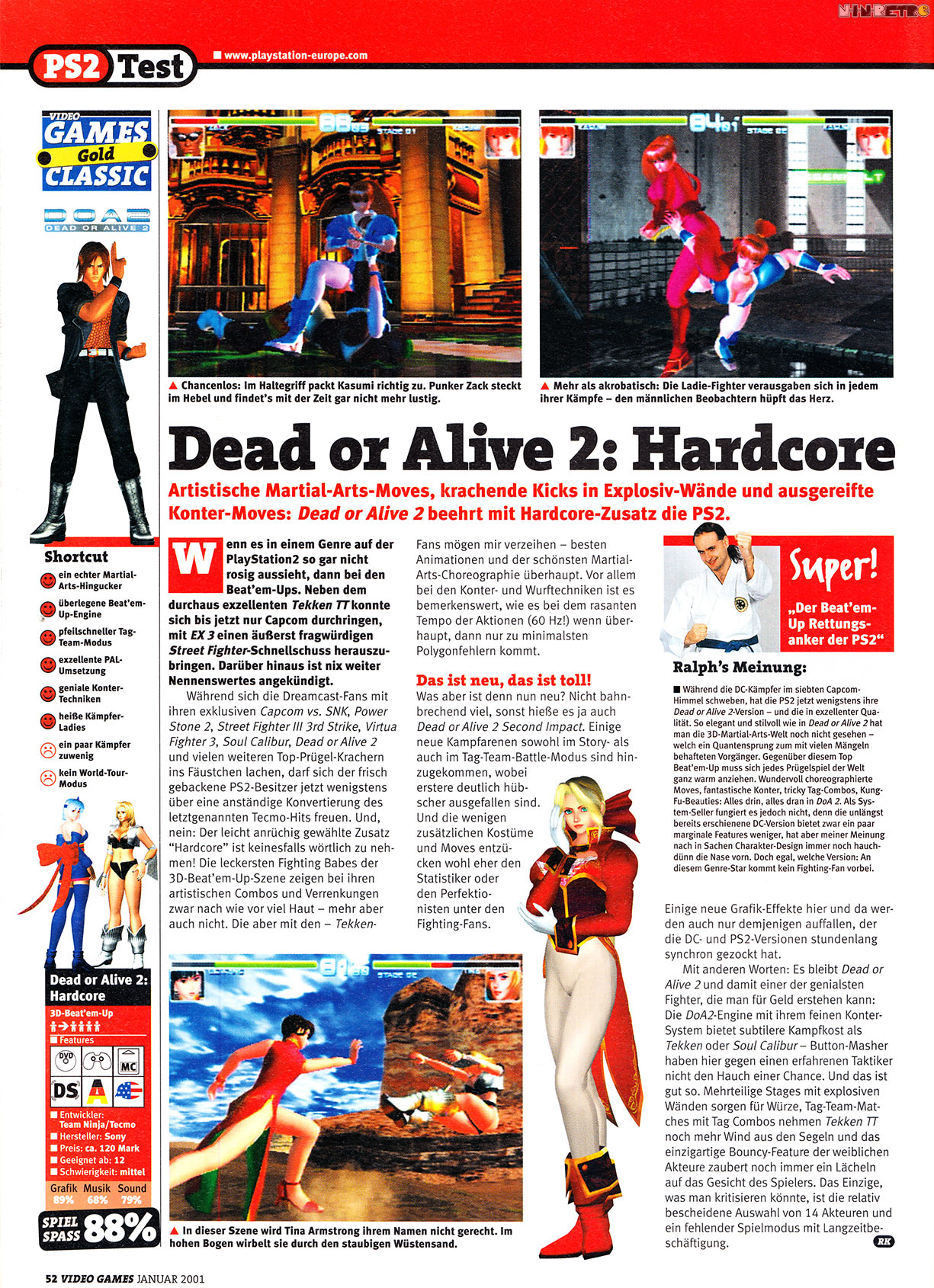 Technisch Top. Kontergriffe, Kombinations-Würfe und schöne Combo-Folgen. Alles gut verpackt mit übersichtlichen Menüs, einem tollen Trainingsmodus und mit einer sehr guten Grafik dargeboten. Auf der PS2 für mich einer der besten Prügler.