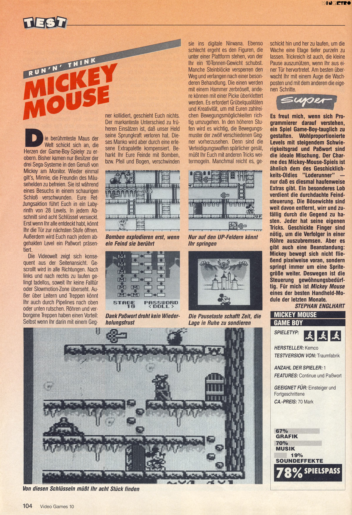 Jetzt fangen die großen Abenteuer Mickey's im rätselhaften Schloß Arbaless an! Dort gibt es seltsame Fallen und Du mußt verschmitzte Feinde überwinden, um die geliebte Minnie zu retten. Mit der praktischen Fortsetzfunktion kannst Du nch Belieben "Mickey Mouse" spielen.