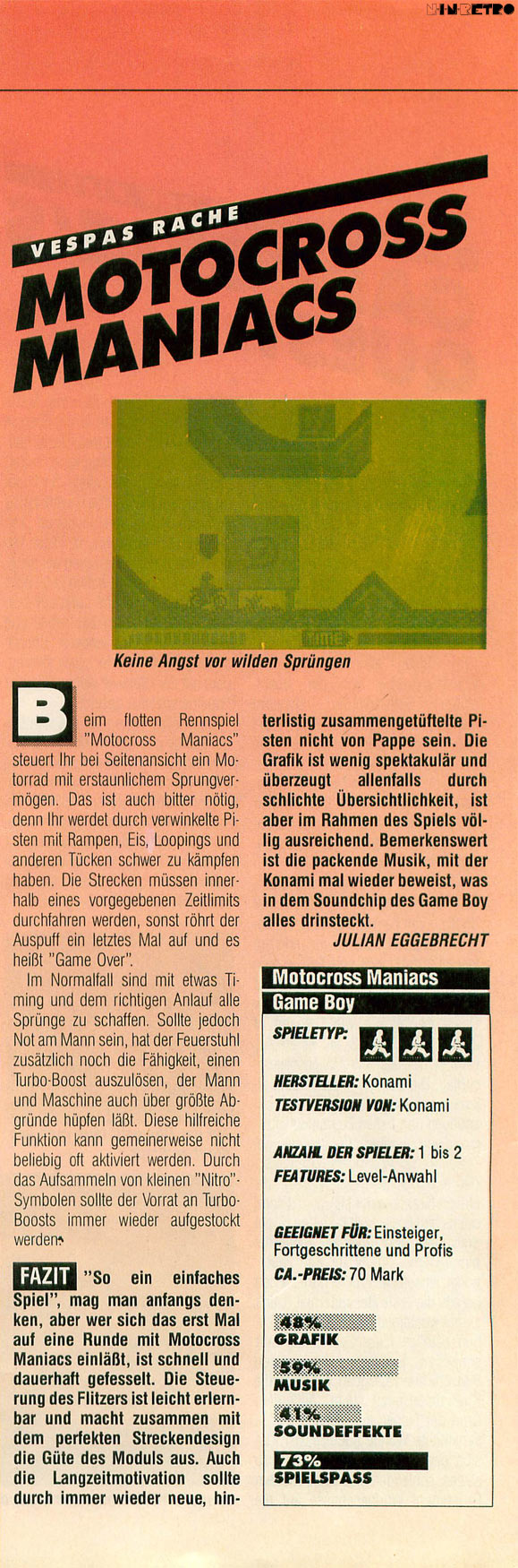Kleine Story am Rande. Ein Kumpel von mir hatte damals immer wieder bei Otto (Neckermann, Quelle? ) das Überraschungsspiel bestellt. Wirklich immer gab es Motocross Maniac.
